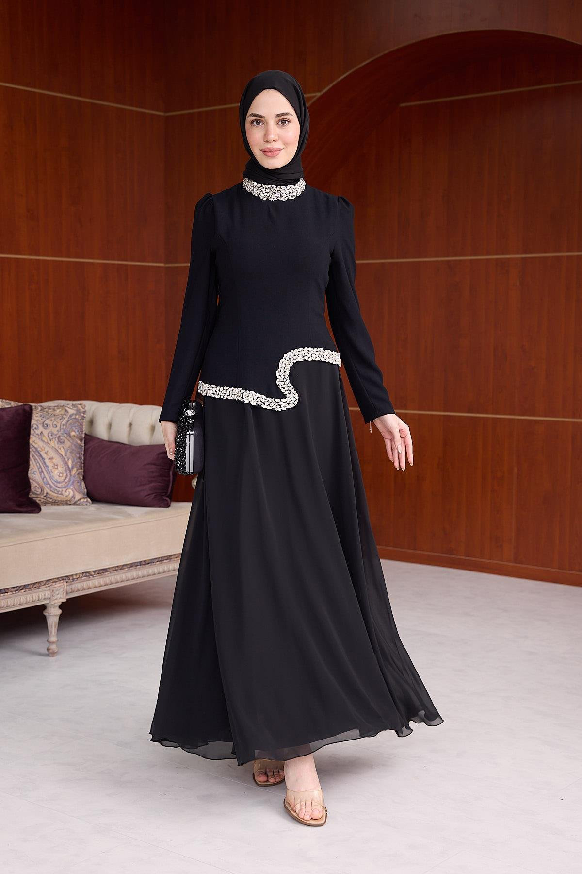 Akşam saatlerinde düzenlenen organizasyonlarda ise daha güçlü ve dikkat çekici tasarımlar tercih edilir. Işıltılı kumaşlar, taş işlemeleri, pullar, payetler, vücuda kusursuz şekilde oturan kesimlerle hazırlanan davet abiye modelleri stilinizi bir adım öne taşır. Böylece modern tesettür giyim koleksiyonlarının en özel parçalarından biri olan abiyeler, davet stilinizin en etkileyici tamamlayıcısı haline gelir.