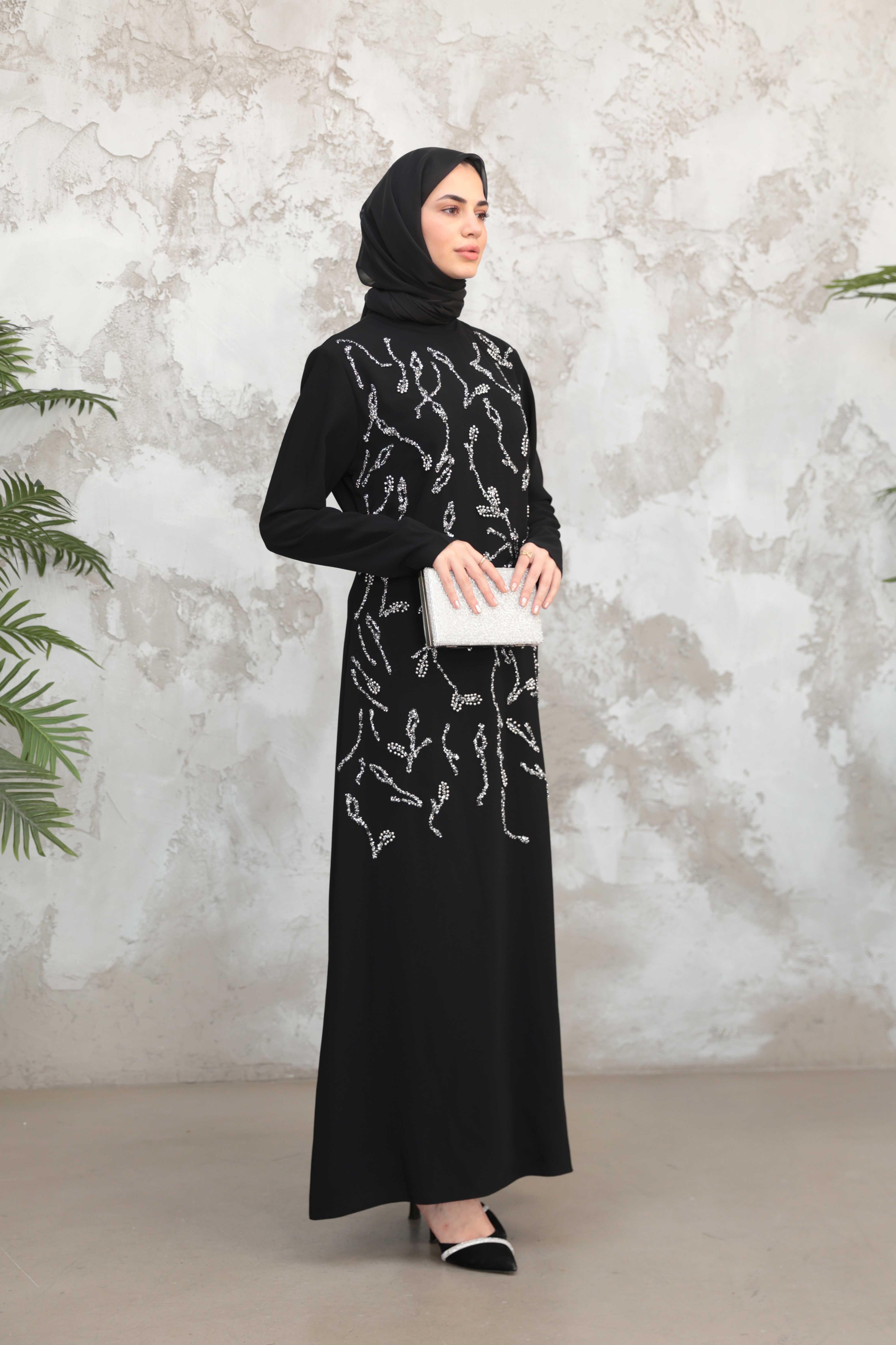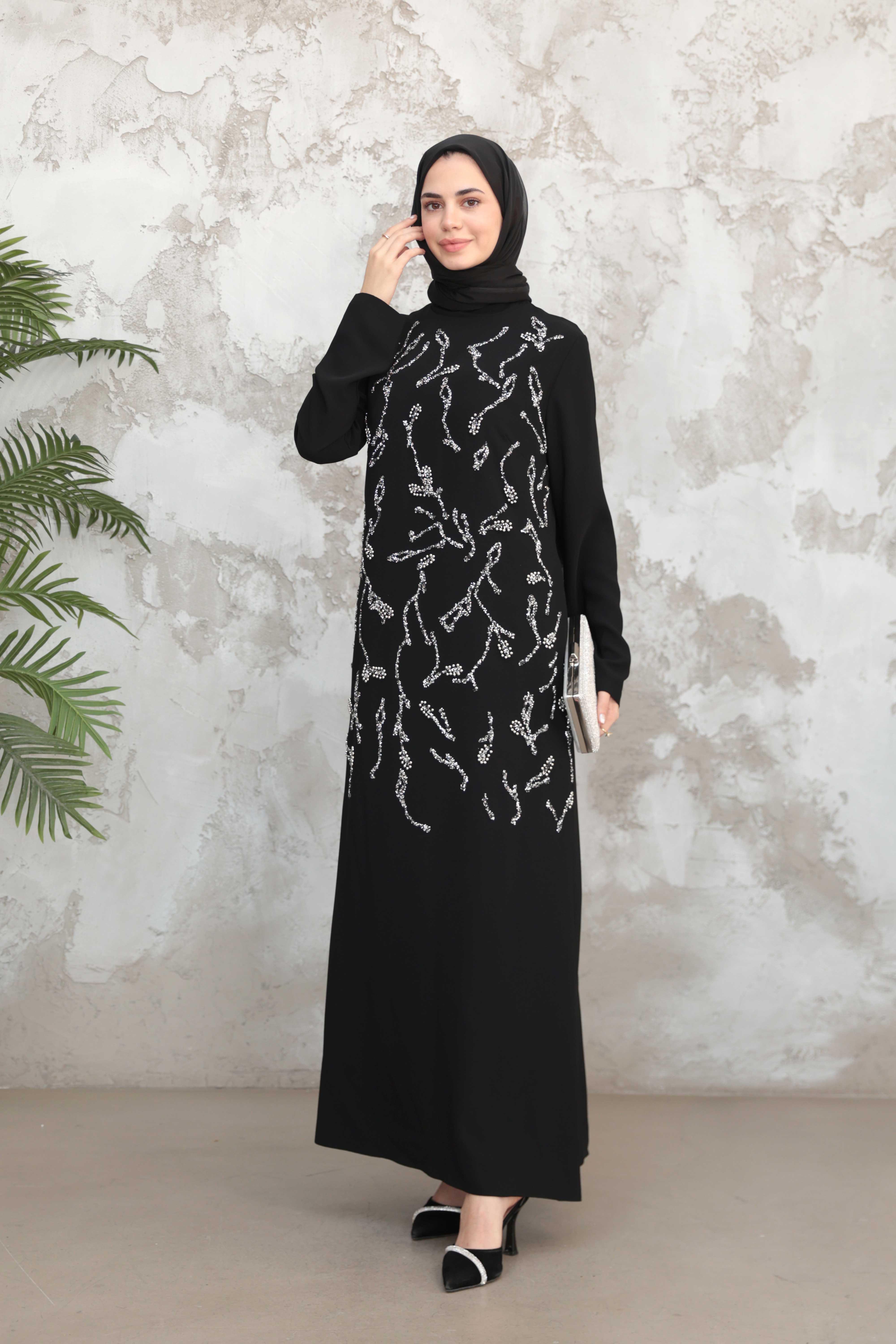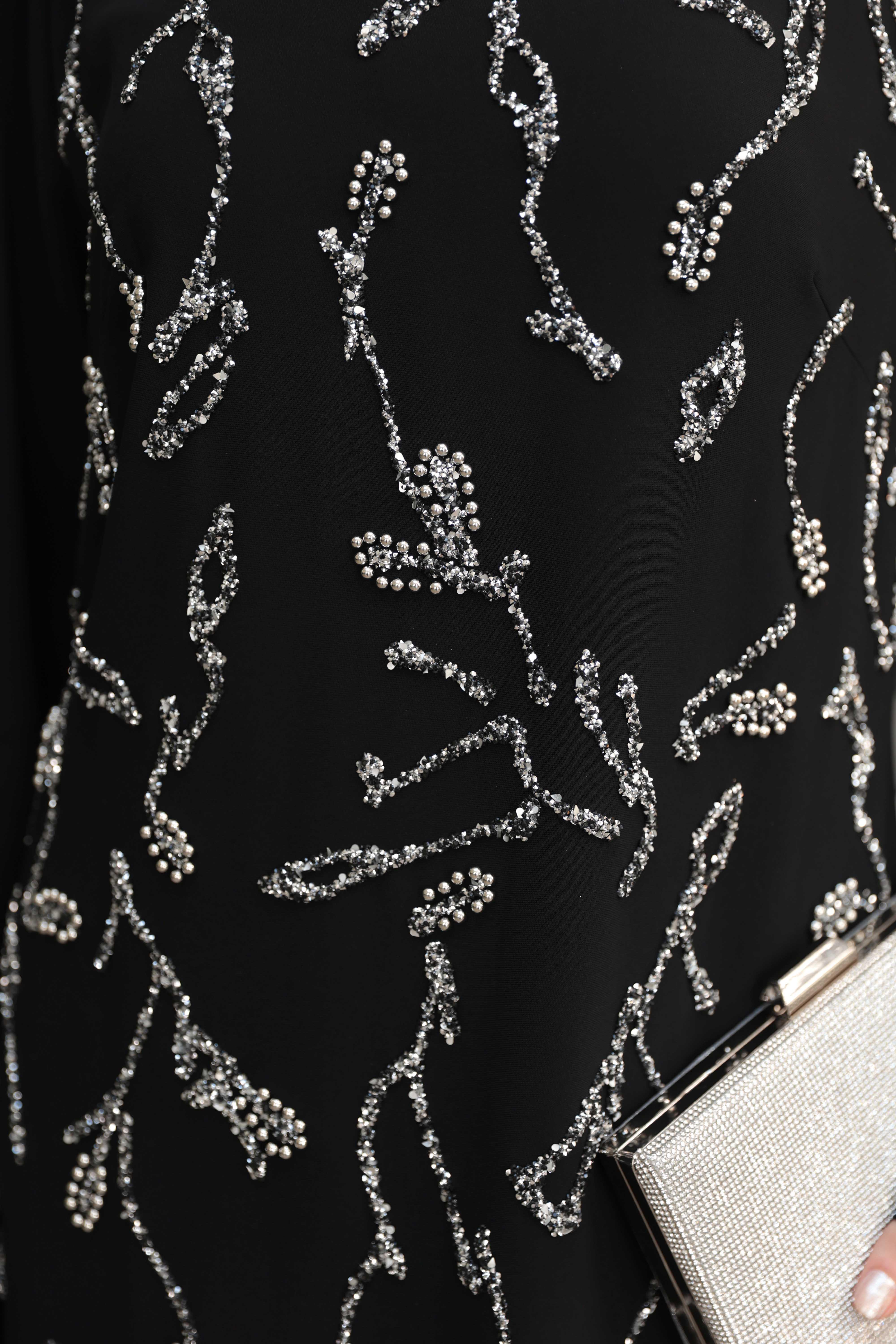 Çiçek İşleme Krep Abiye - Siyah (ABY000570)