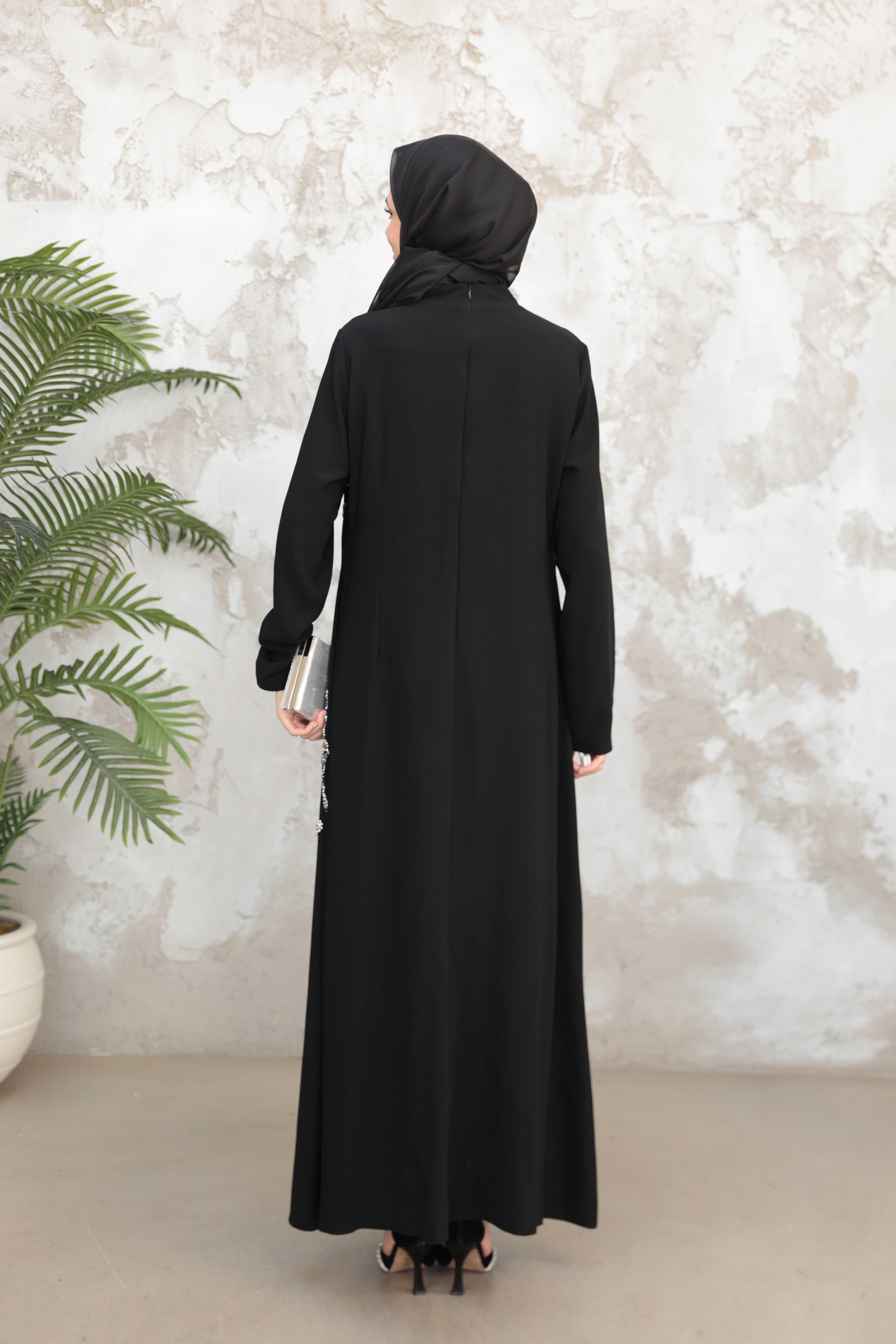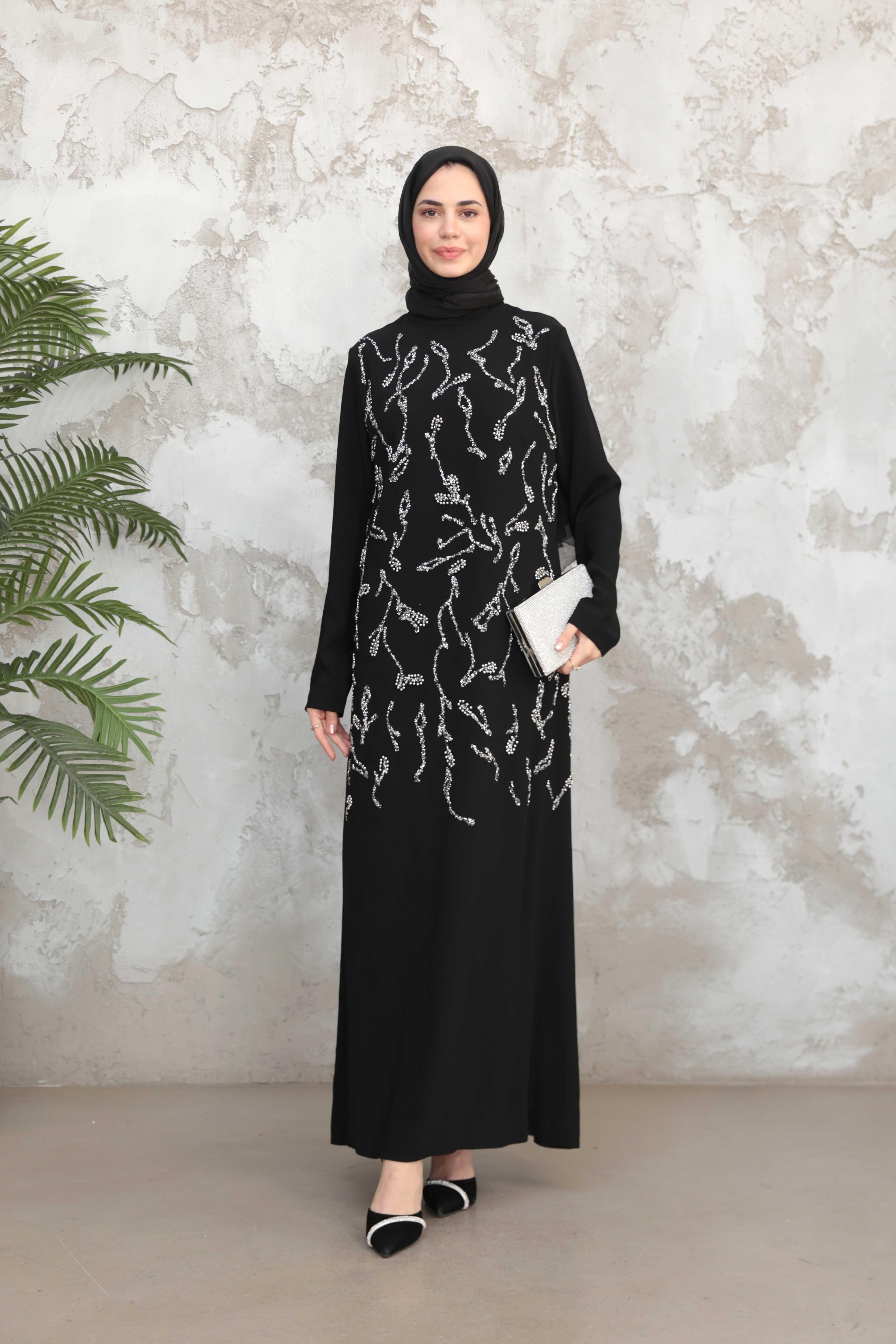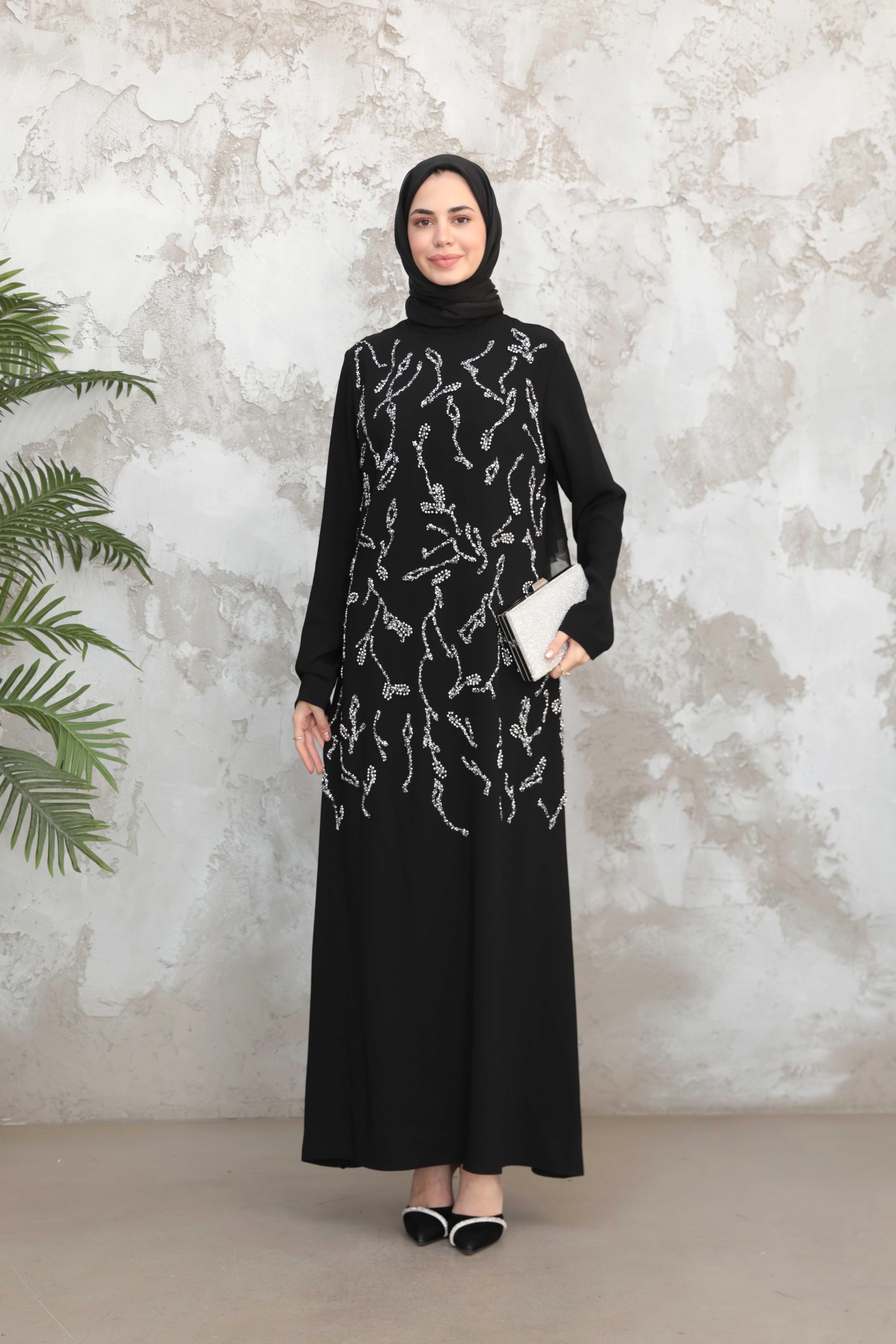 Çiçek İşleme Krep Abiye - Siyah (ABY000570)