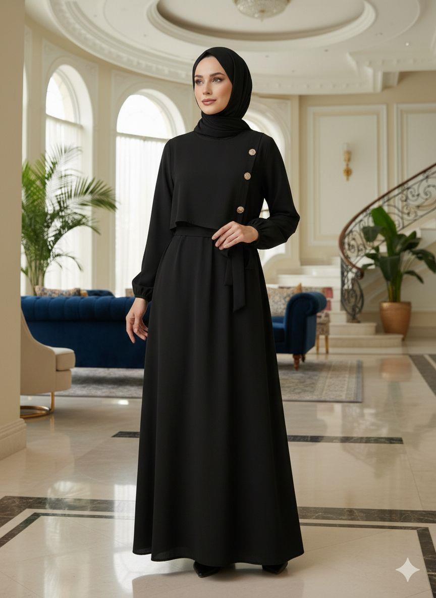 Işık Düğme Detay Elbise - Siyah (ELB000264)