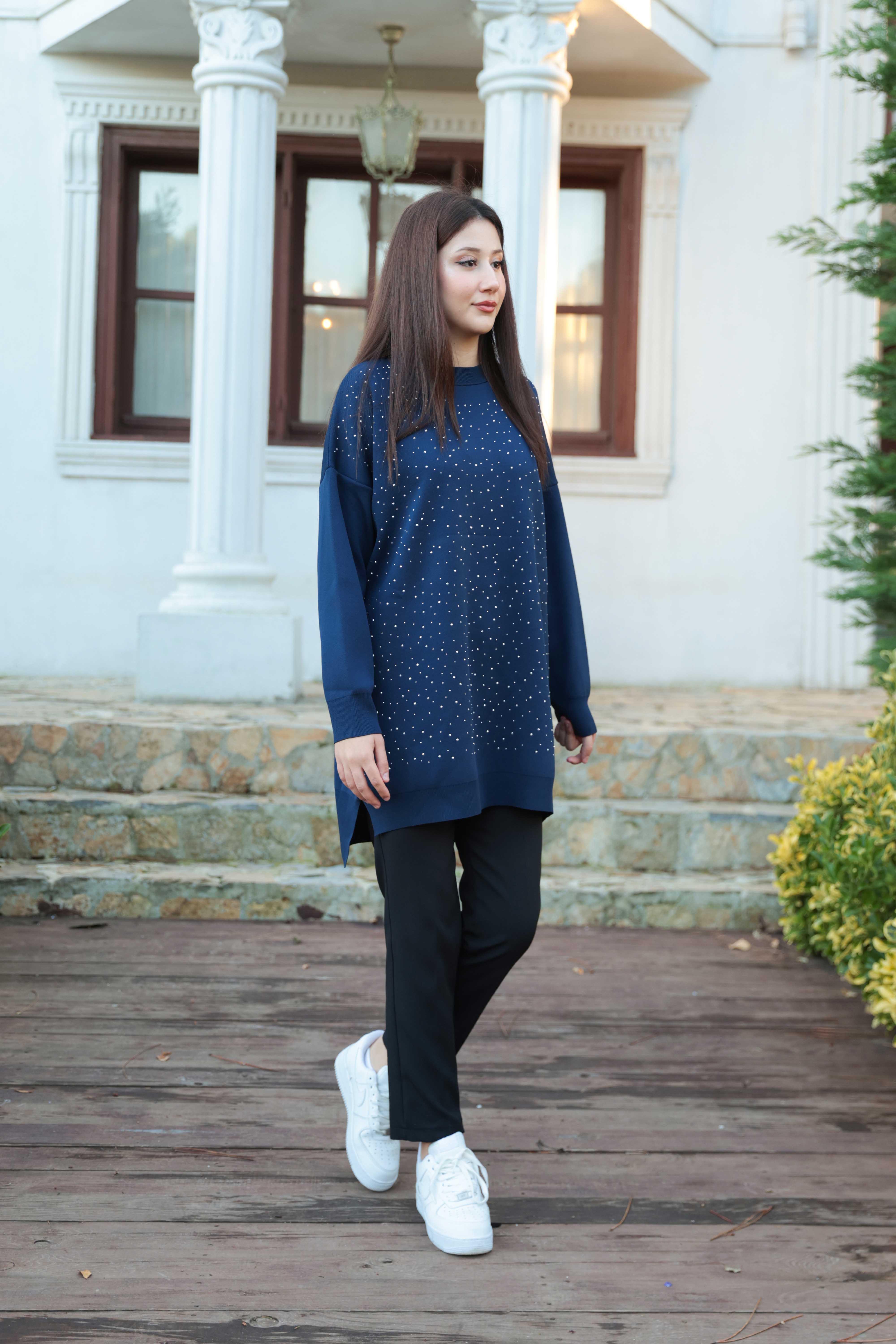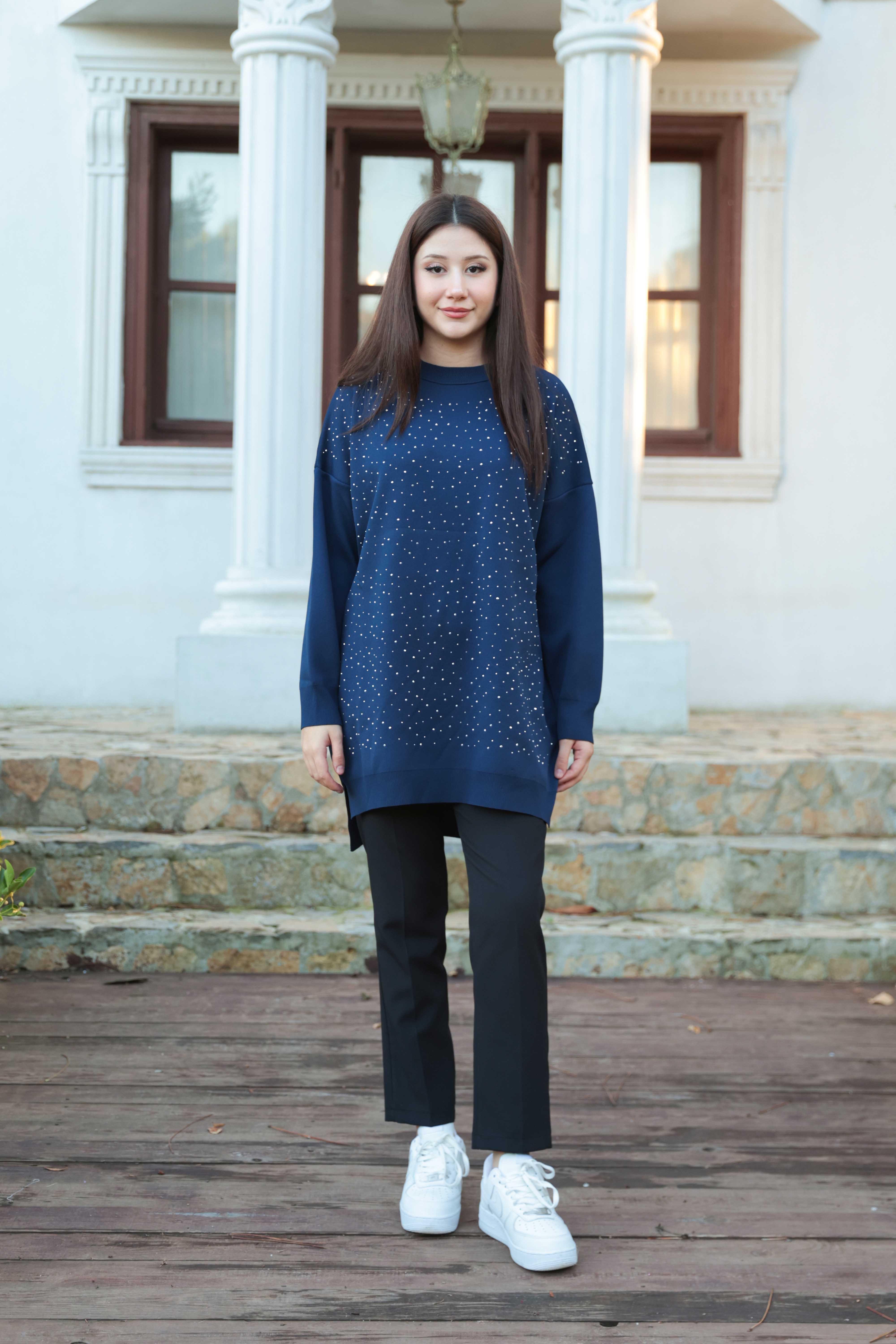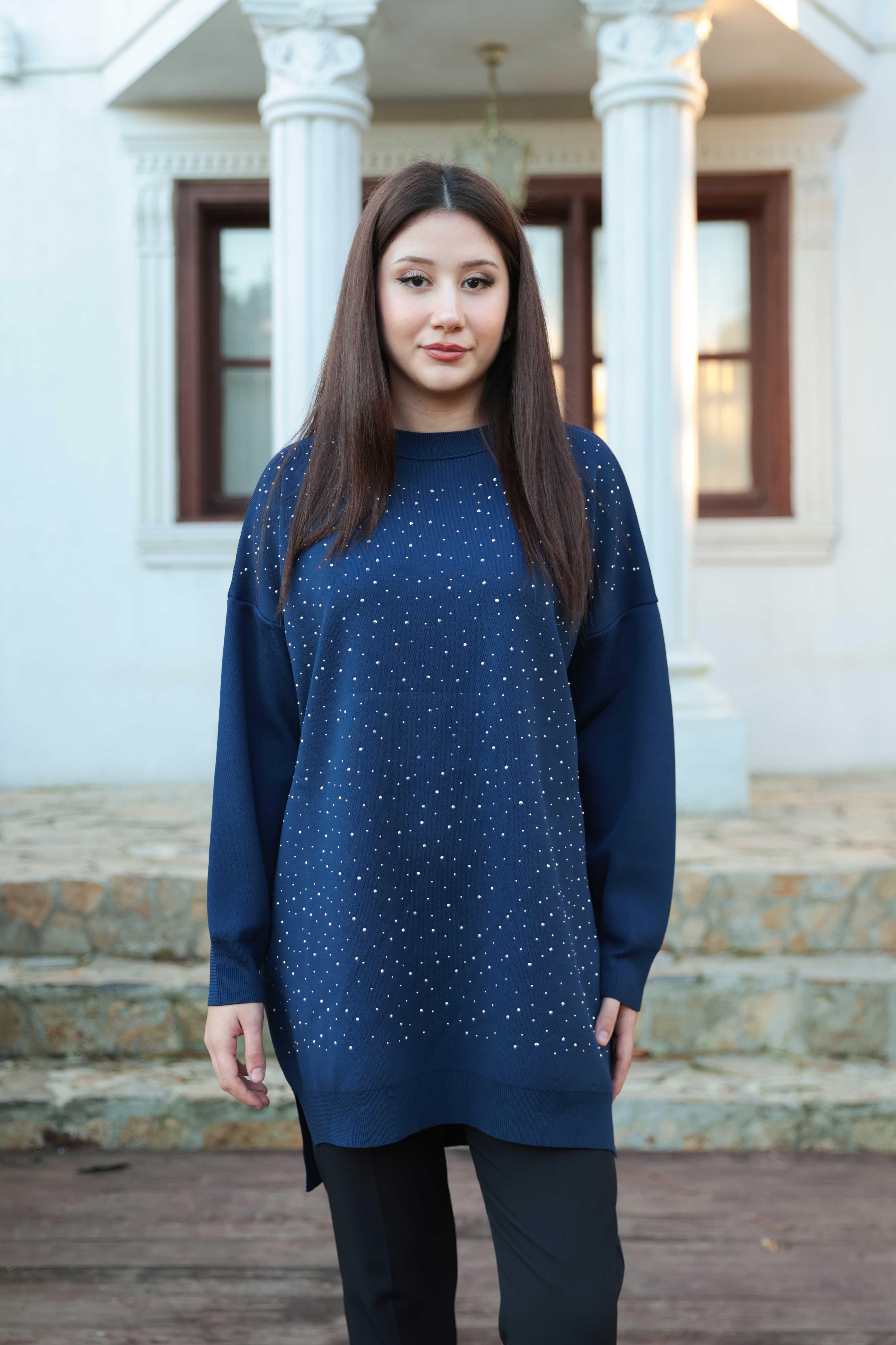 Taş Baskı İşlemeli Tunik - Lacivert (TNK000003)