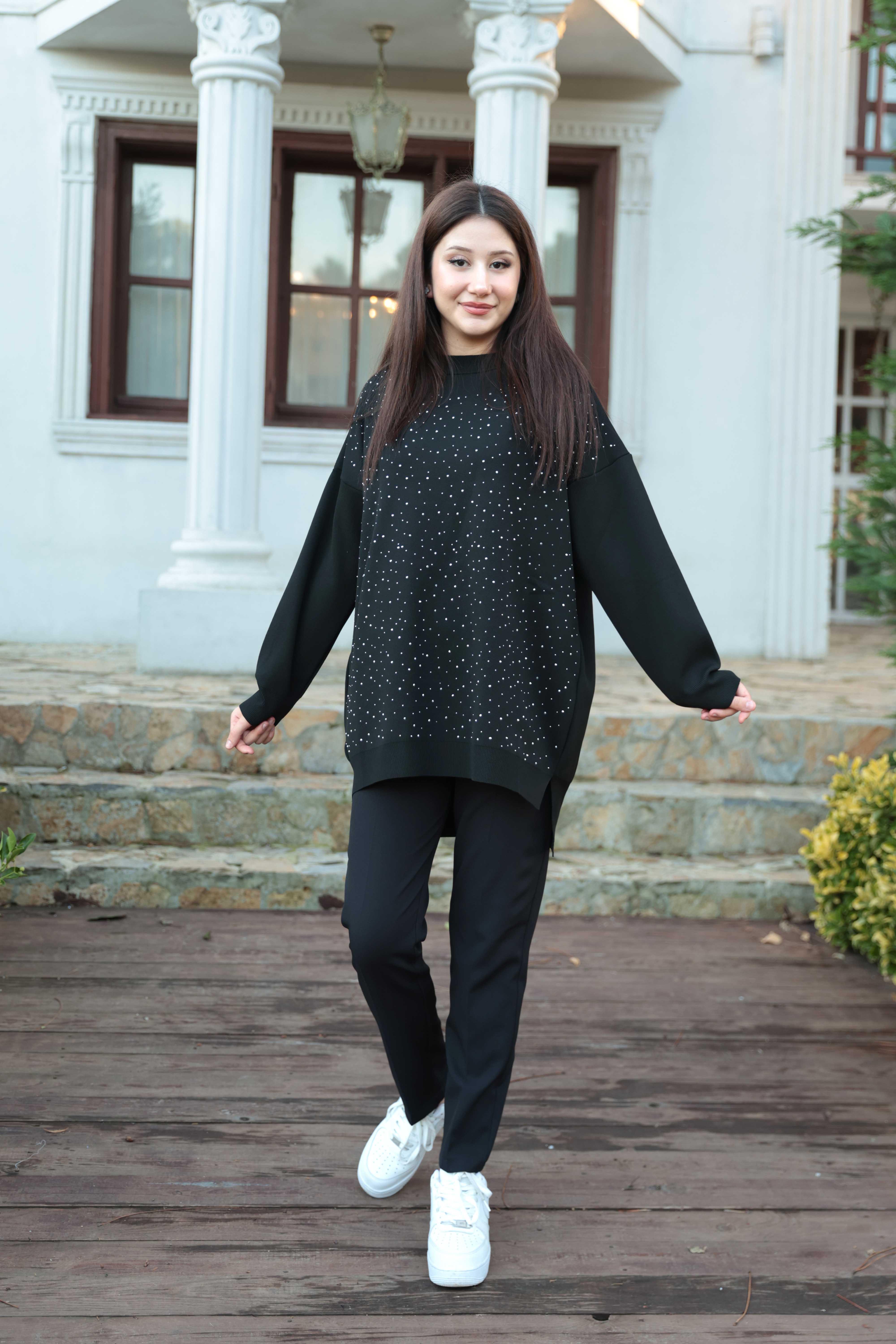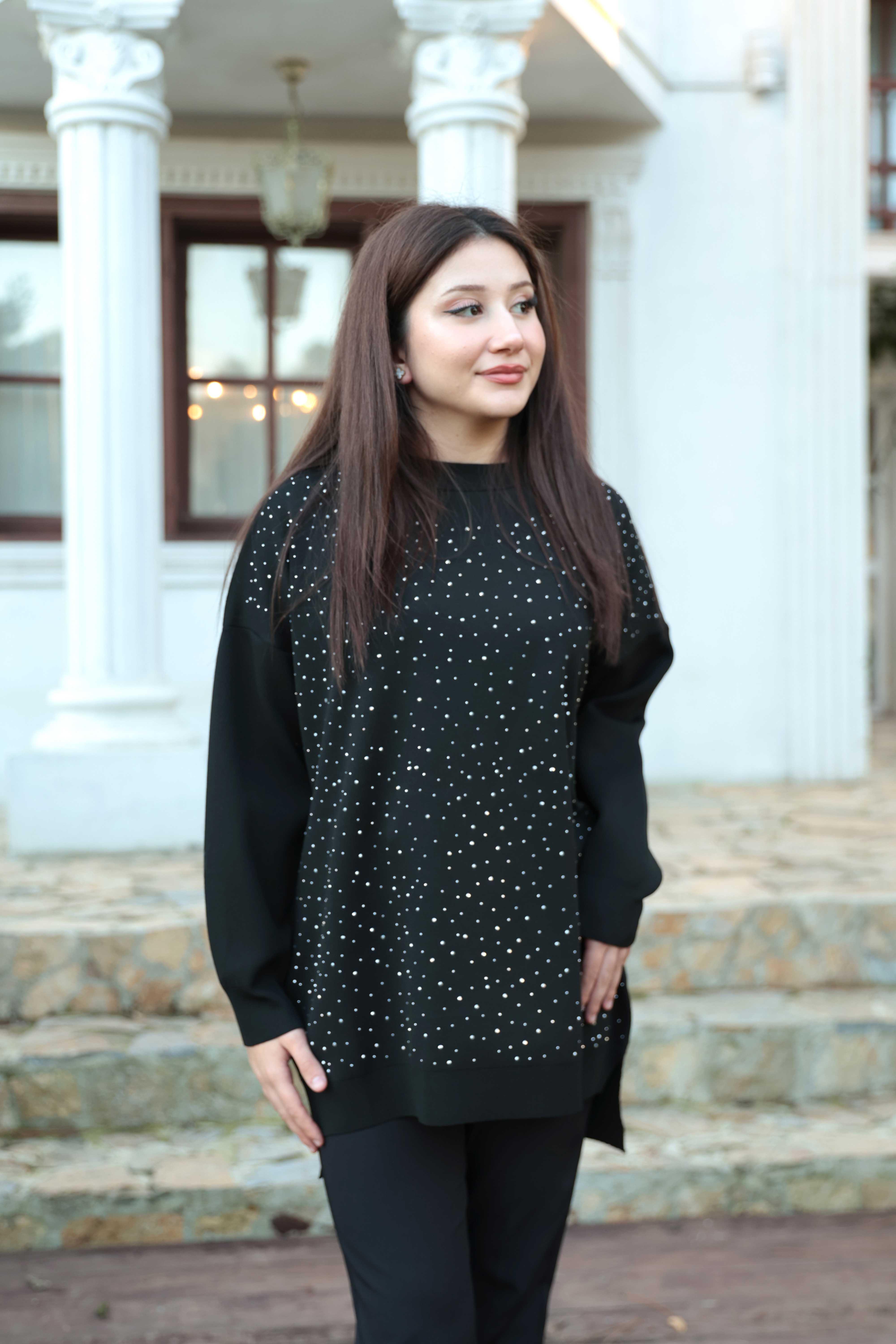 Taş Baskı İşlemeli Tunik - Siyah (TNK000003)