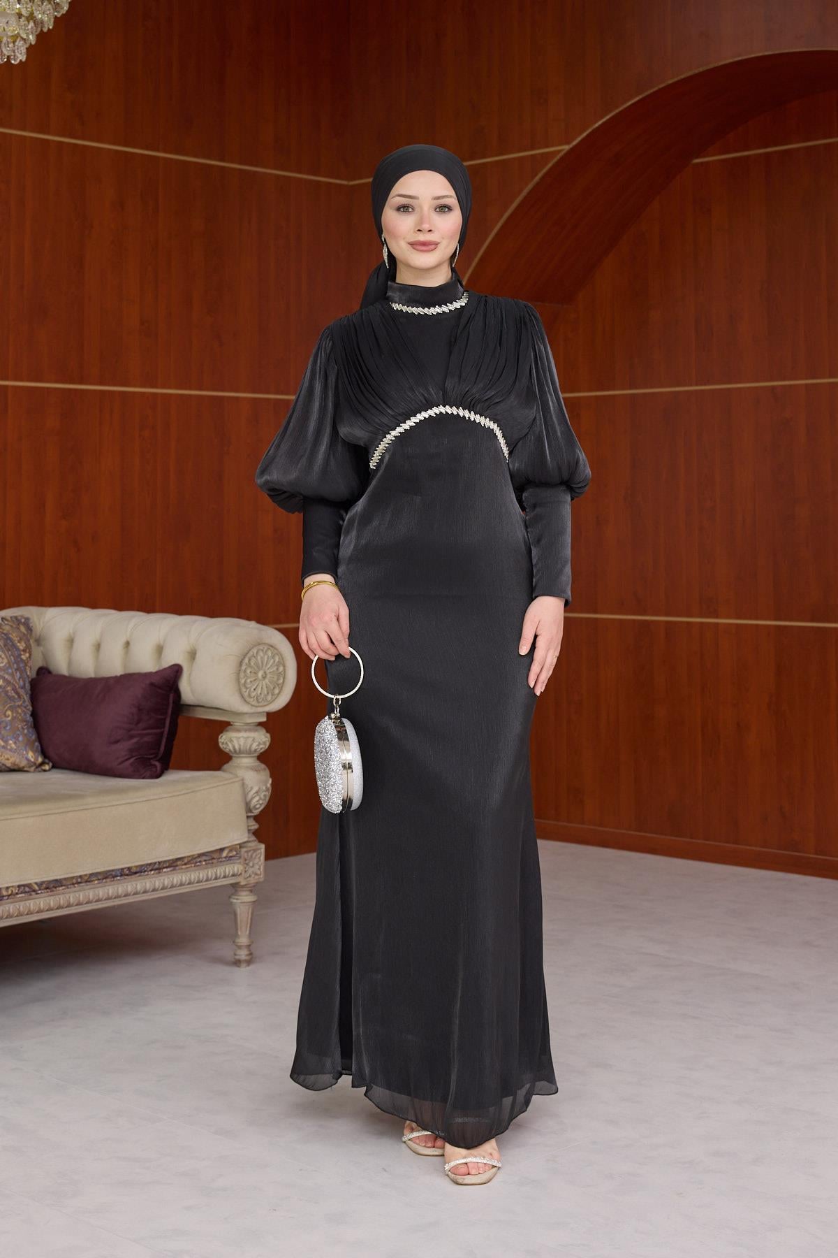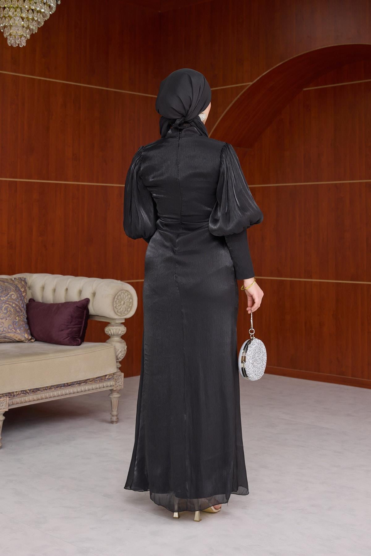 Yonca Işıltı Kumaş Abiye - Siyah (ABY000593)