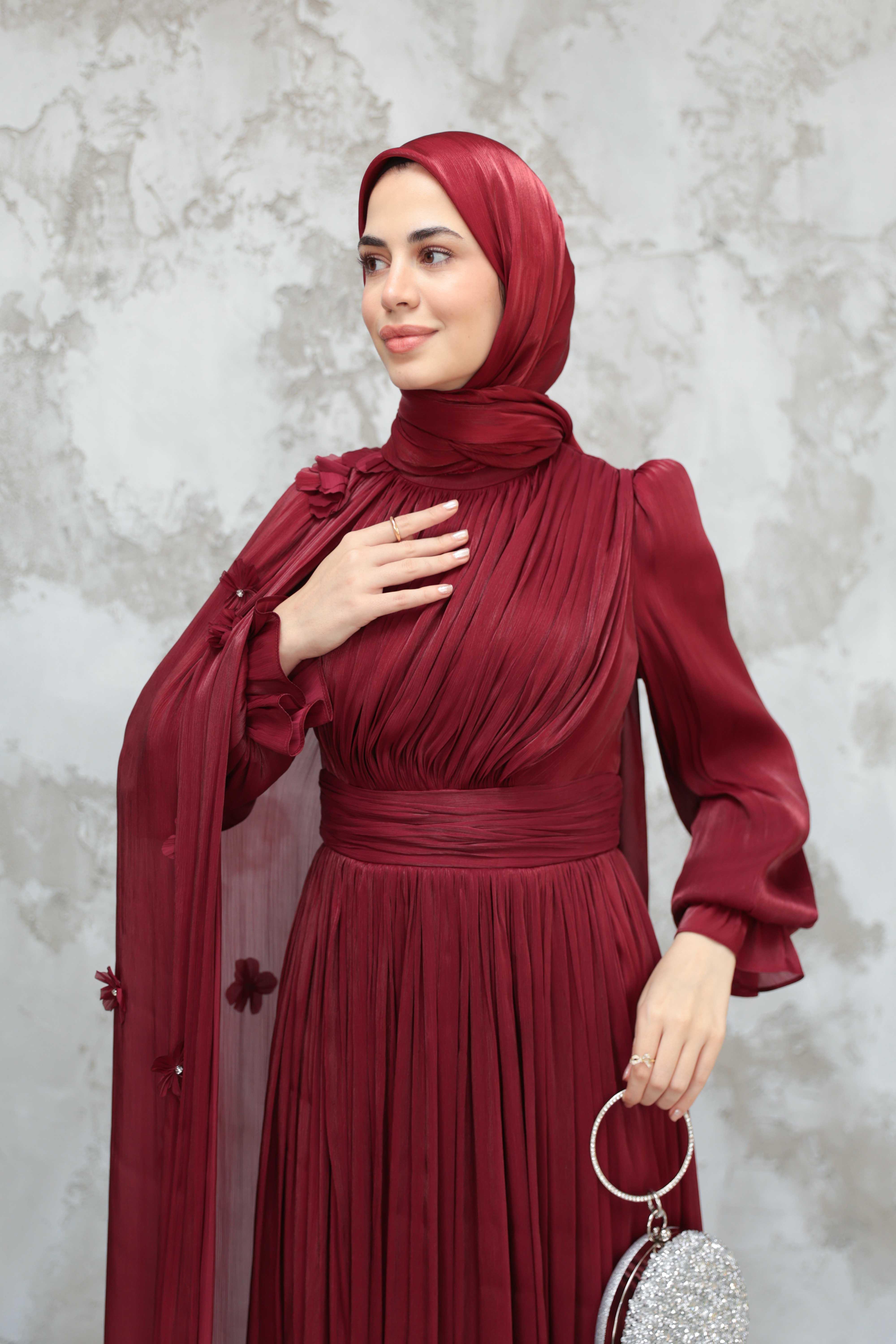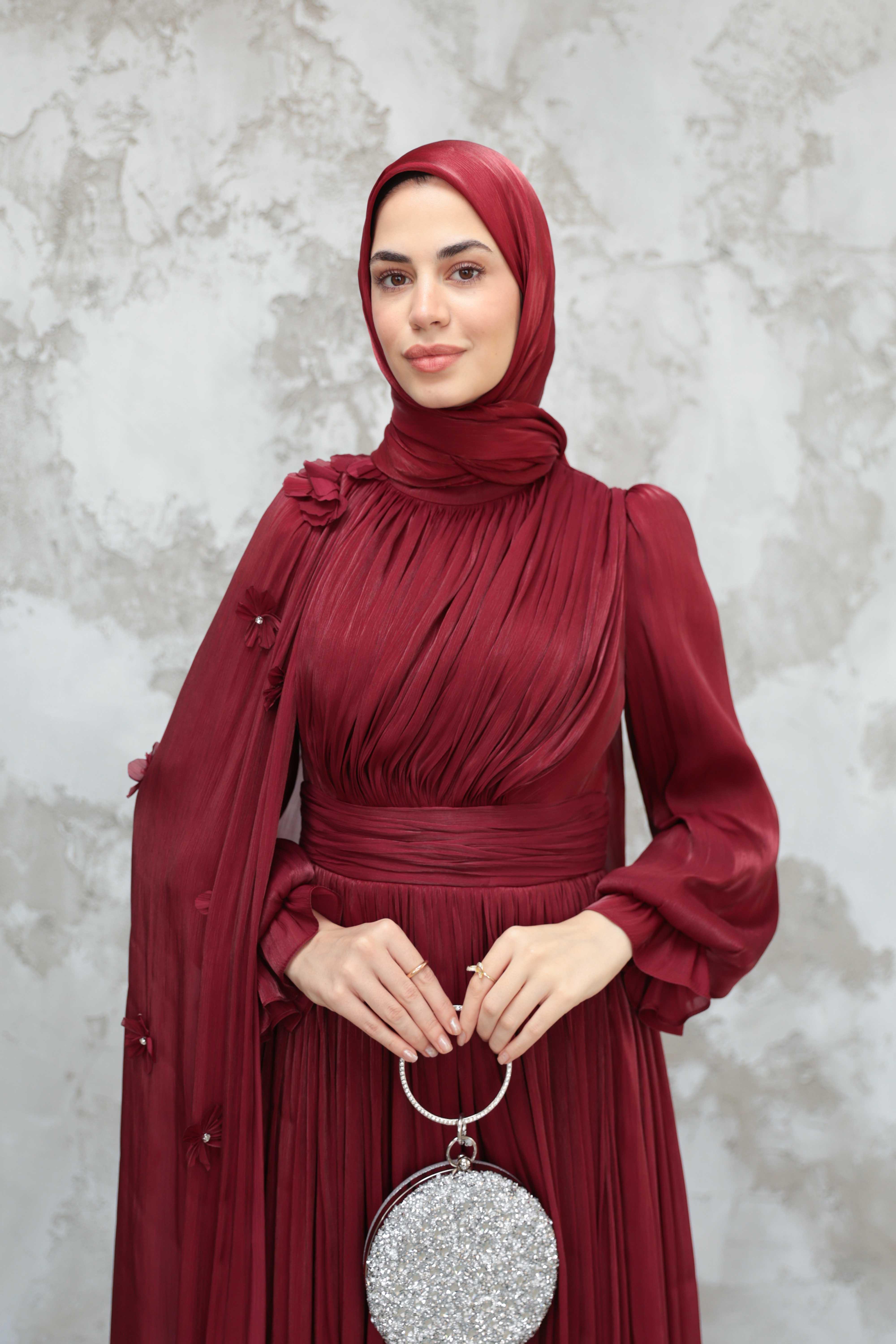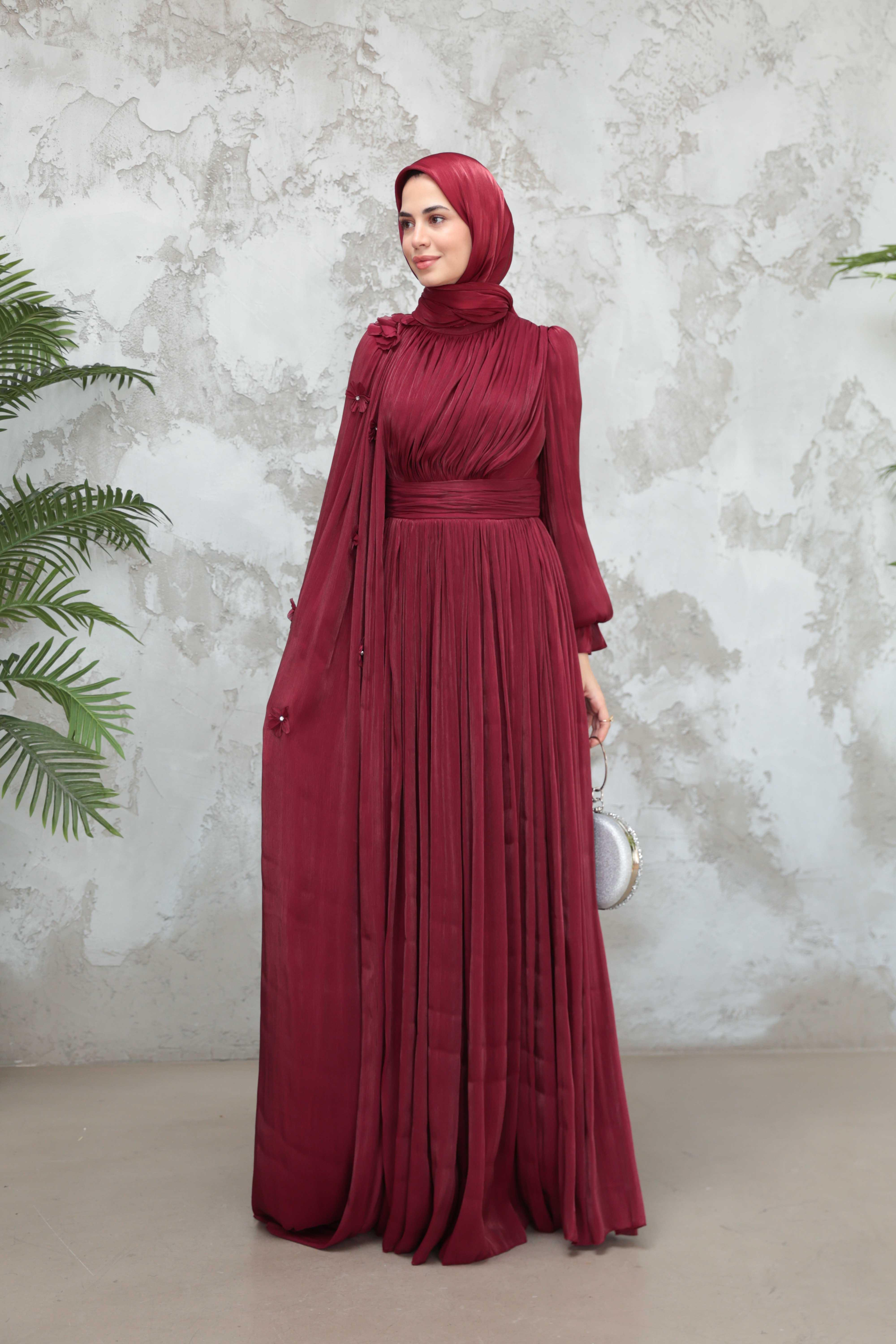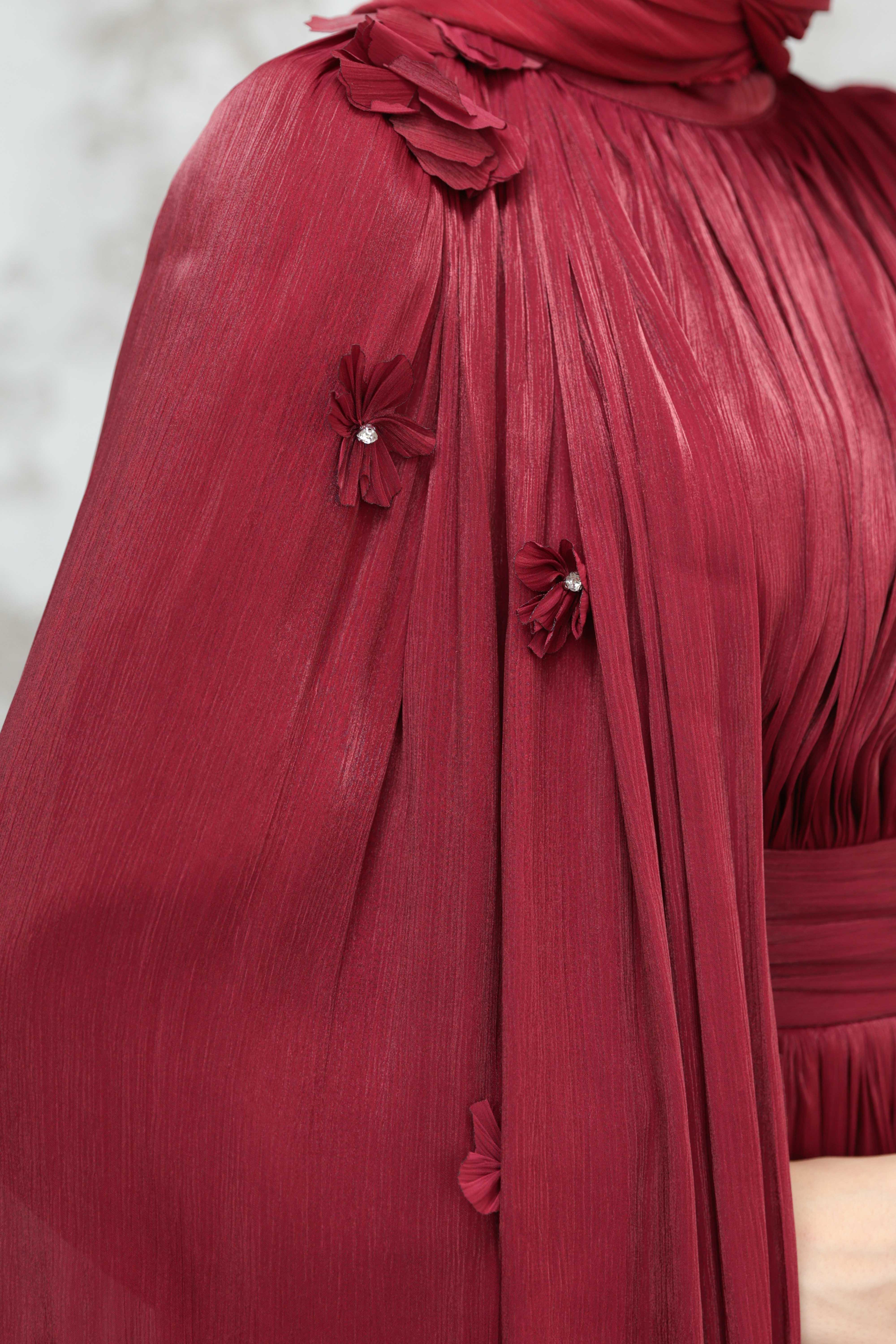 Göksel Çiçek Detay Işıltı Abiye - Bordo (ABY000567)