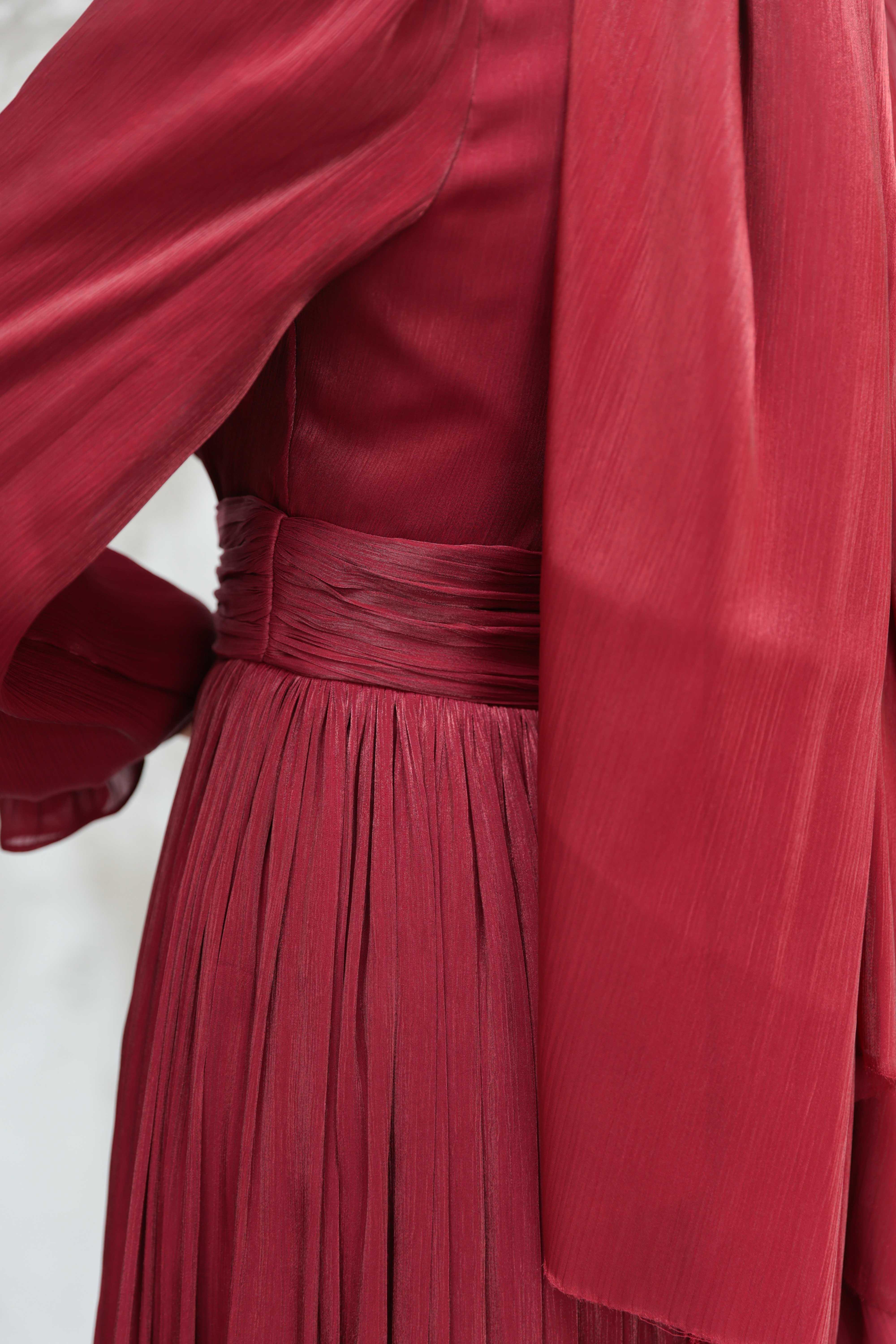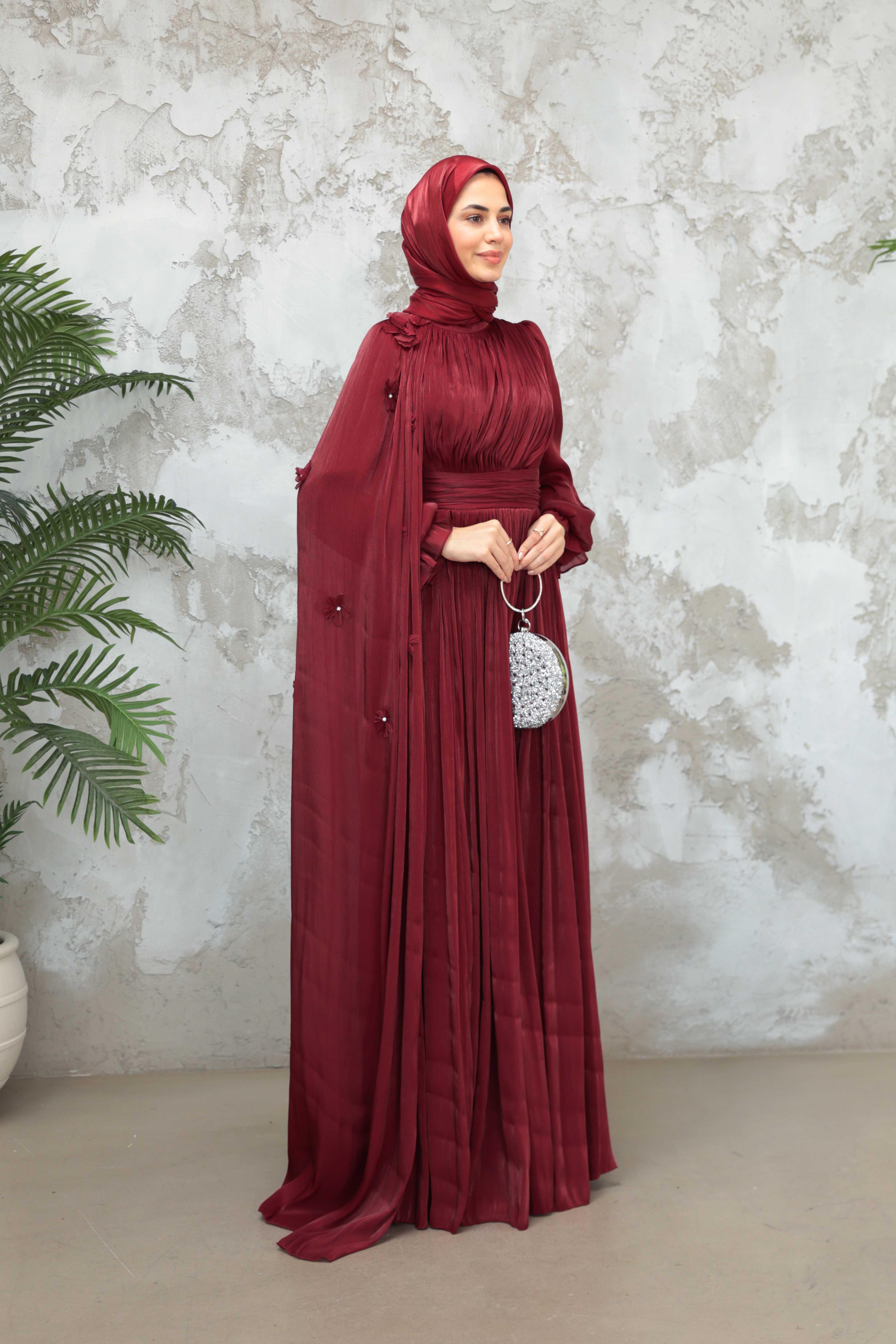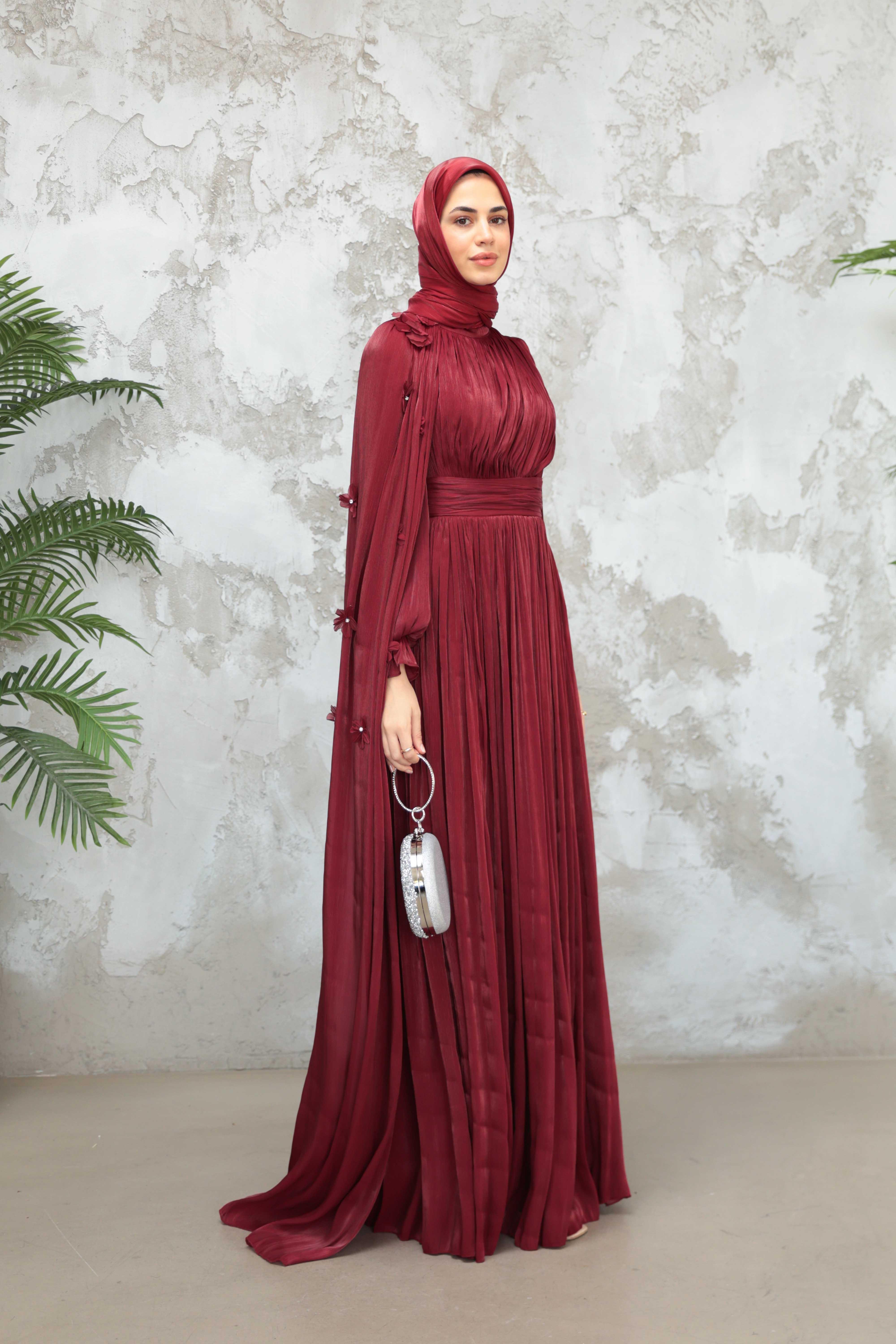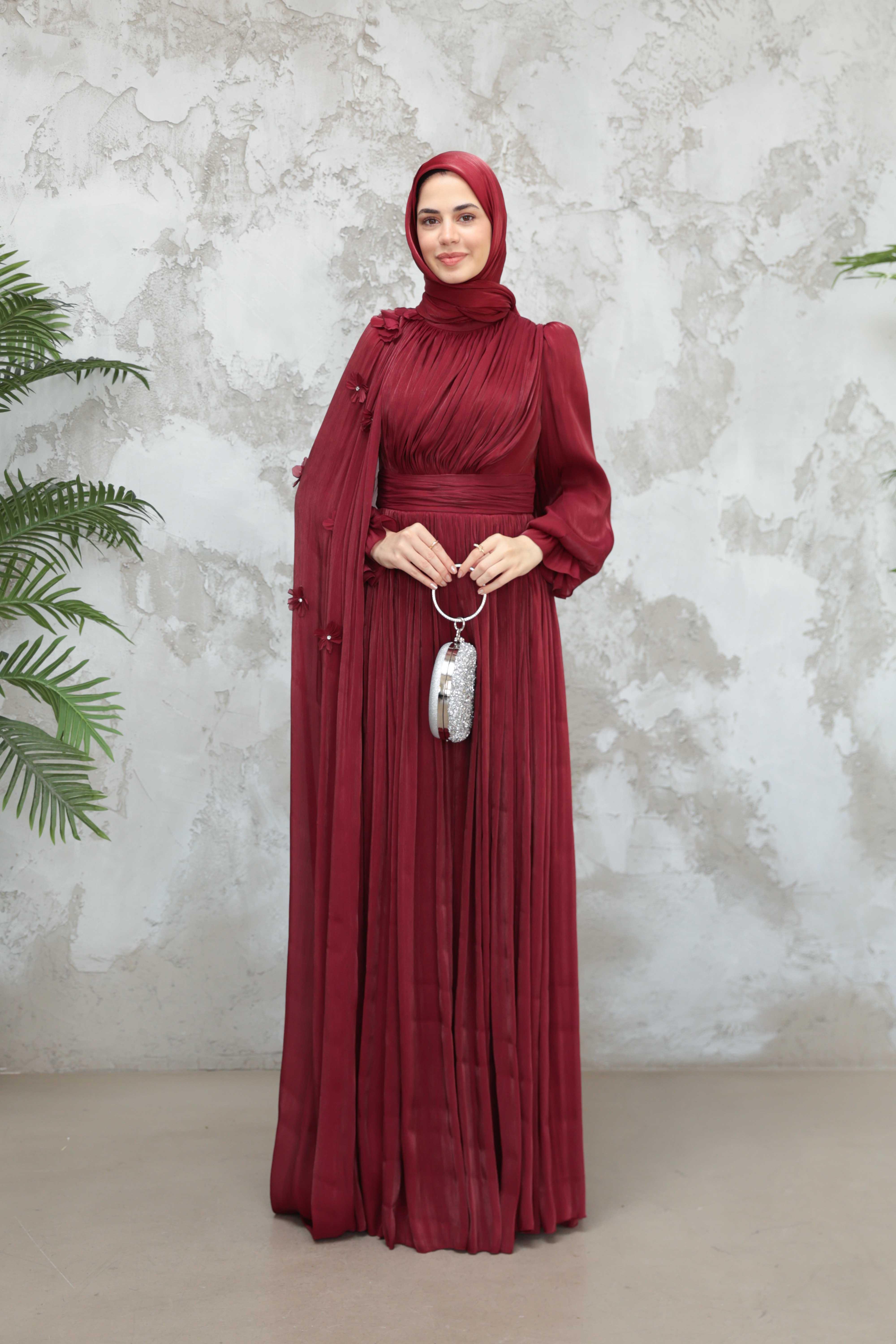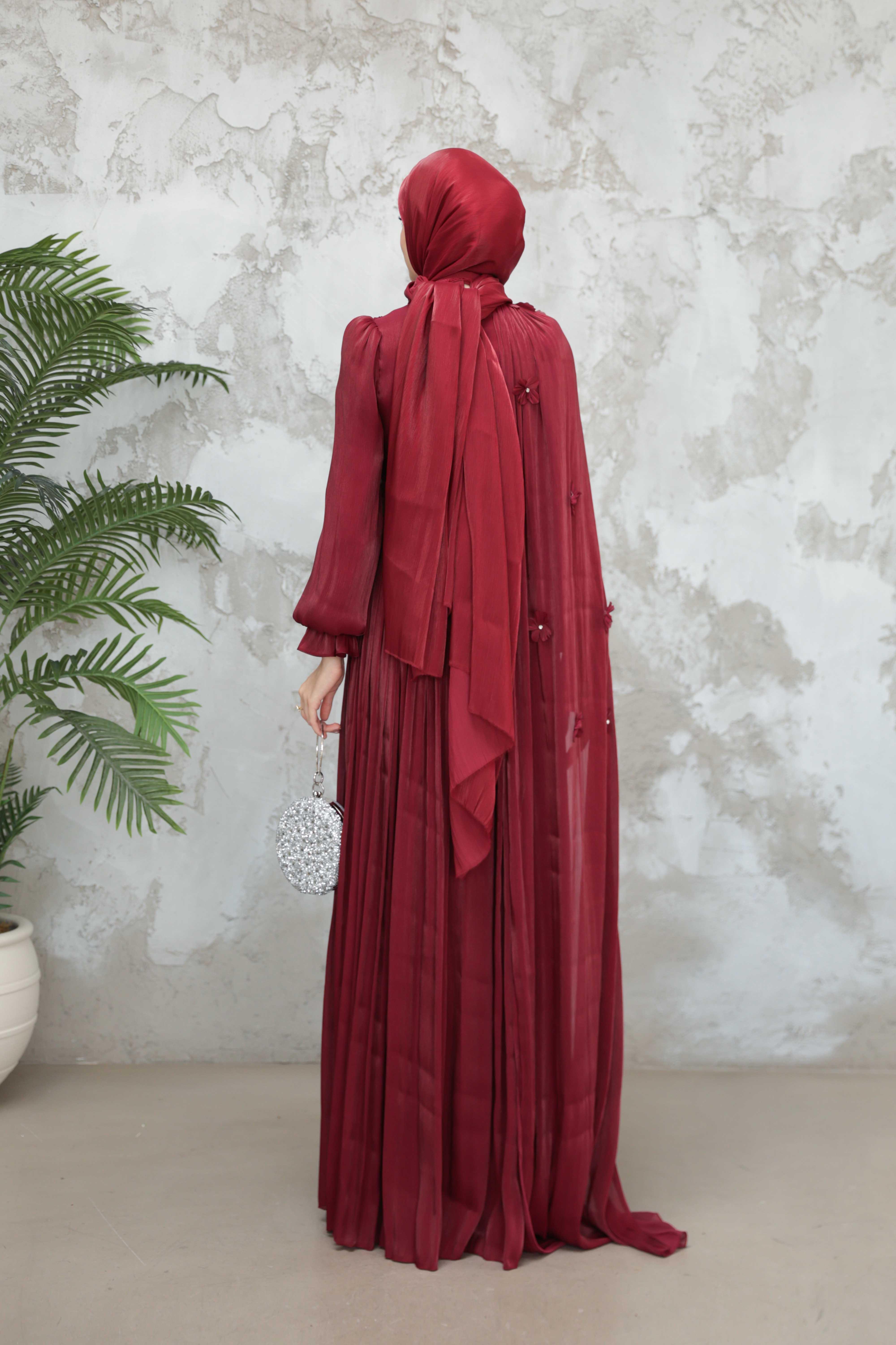 Göksel Çiçek Detay Işıltı Abiye - Bordo (ABY000567)