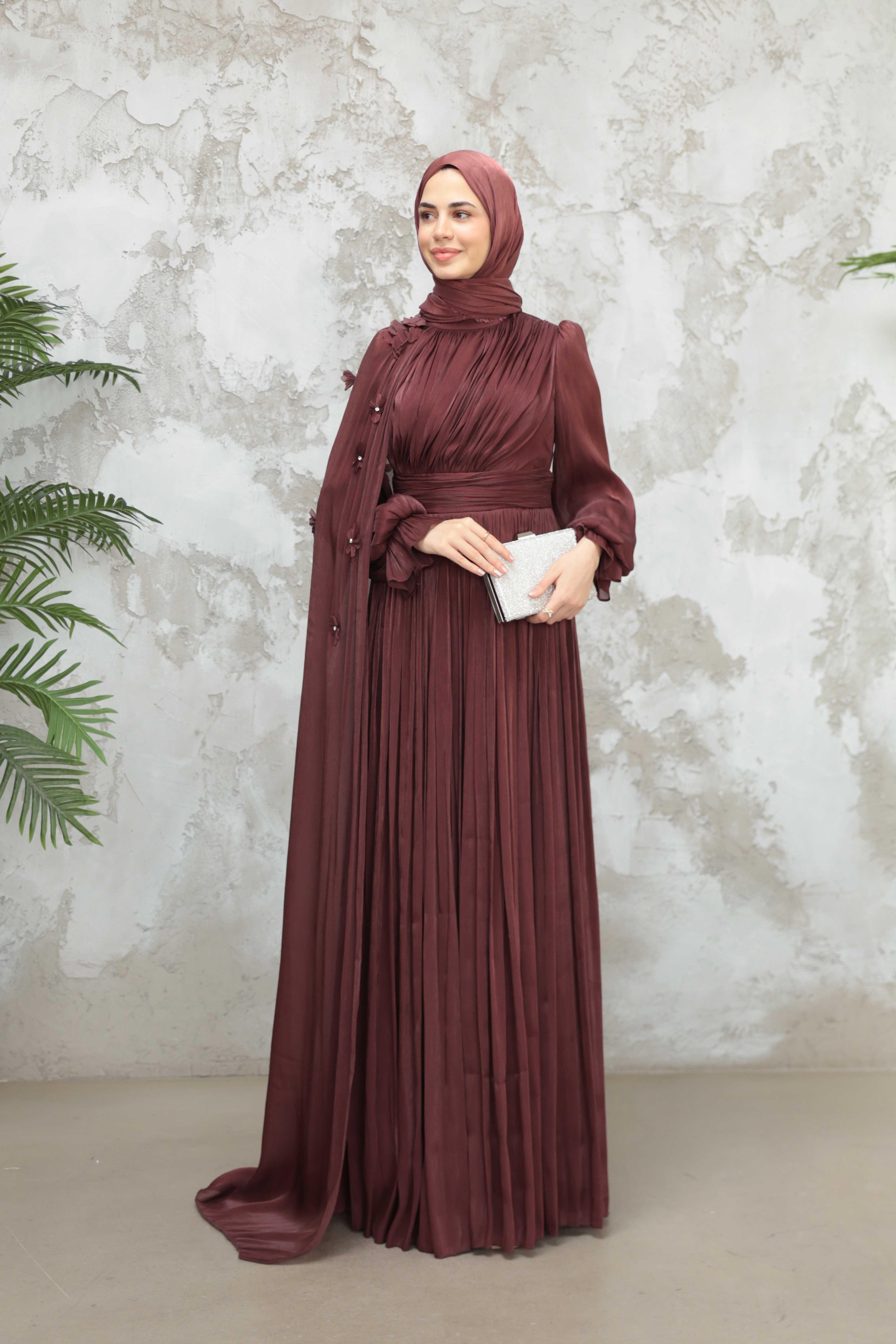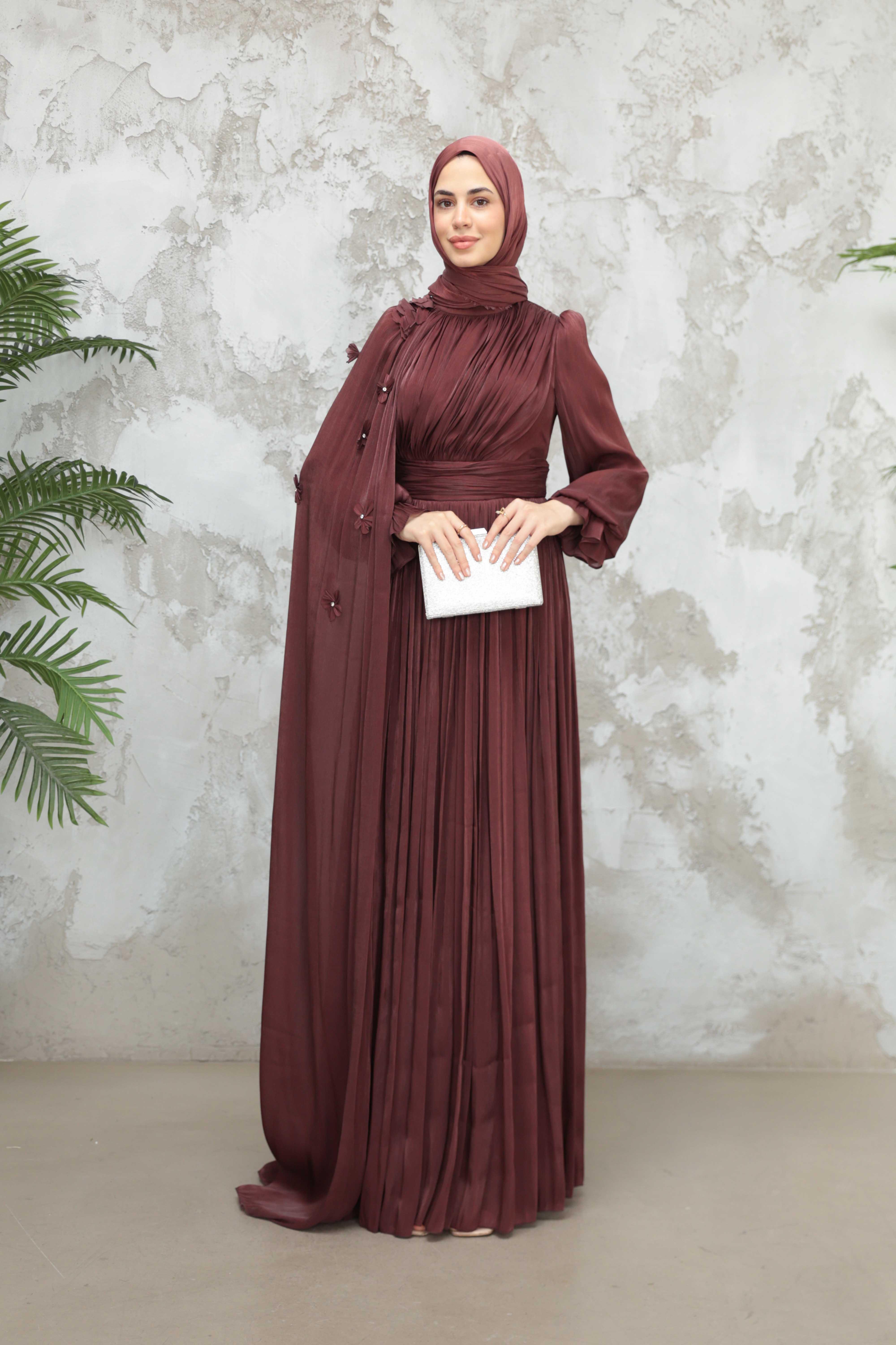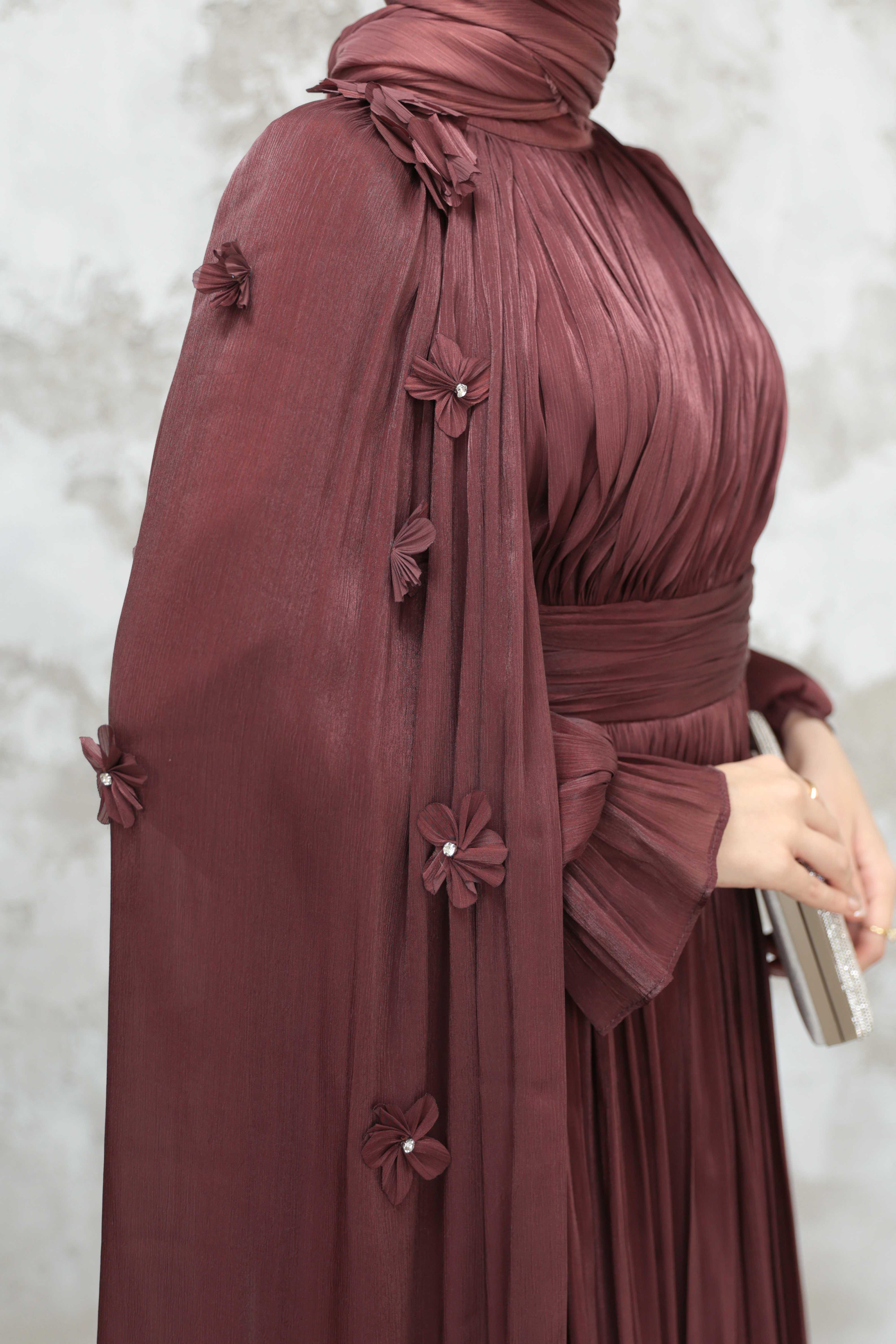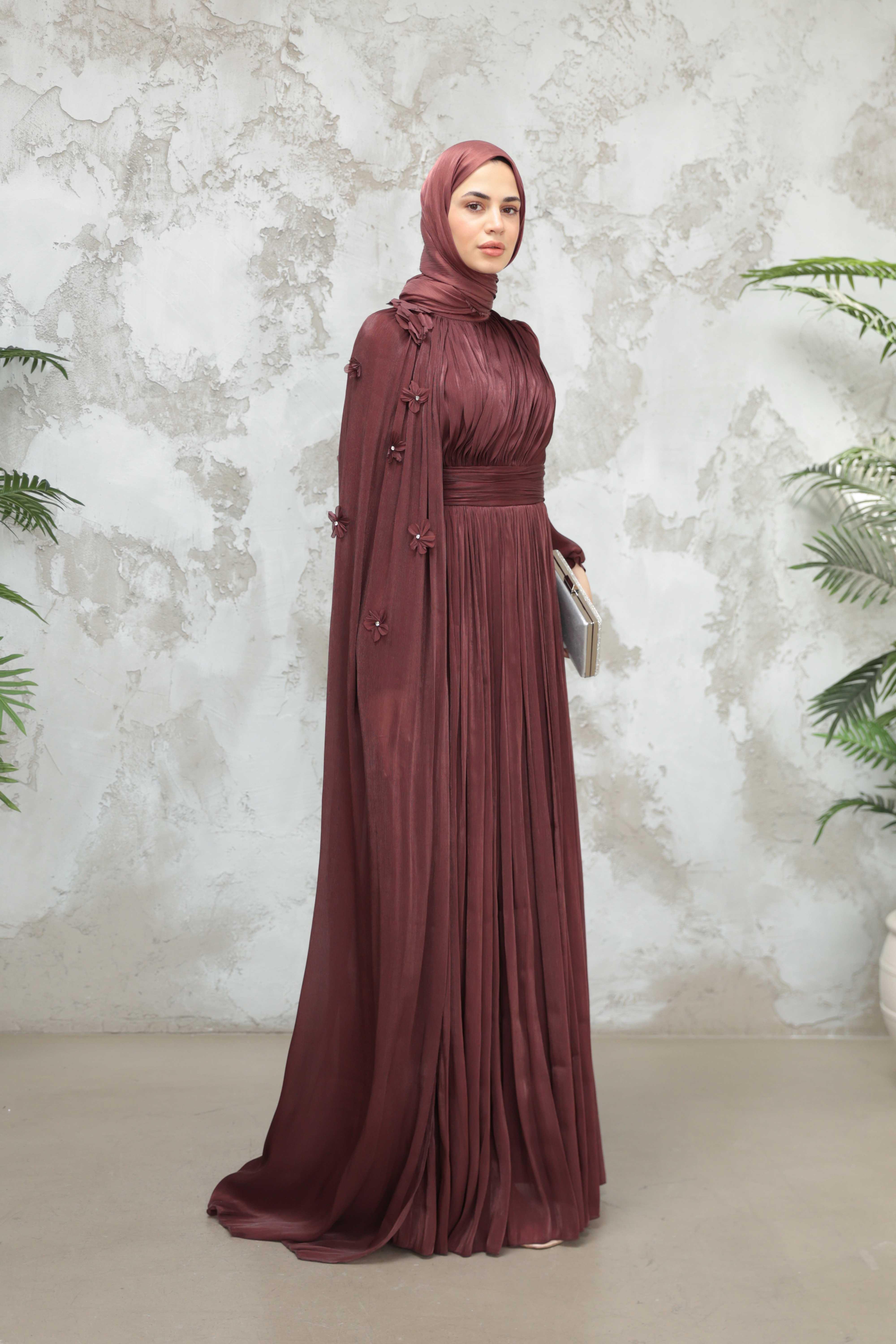 Göksel Çiçek Detay Işıltı Abiye - Kahverengi (ABY000567)