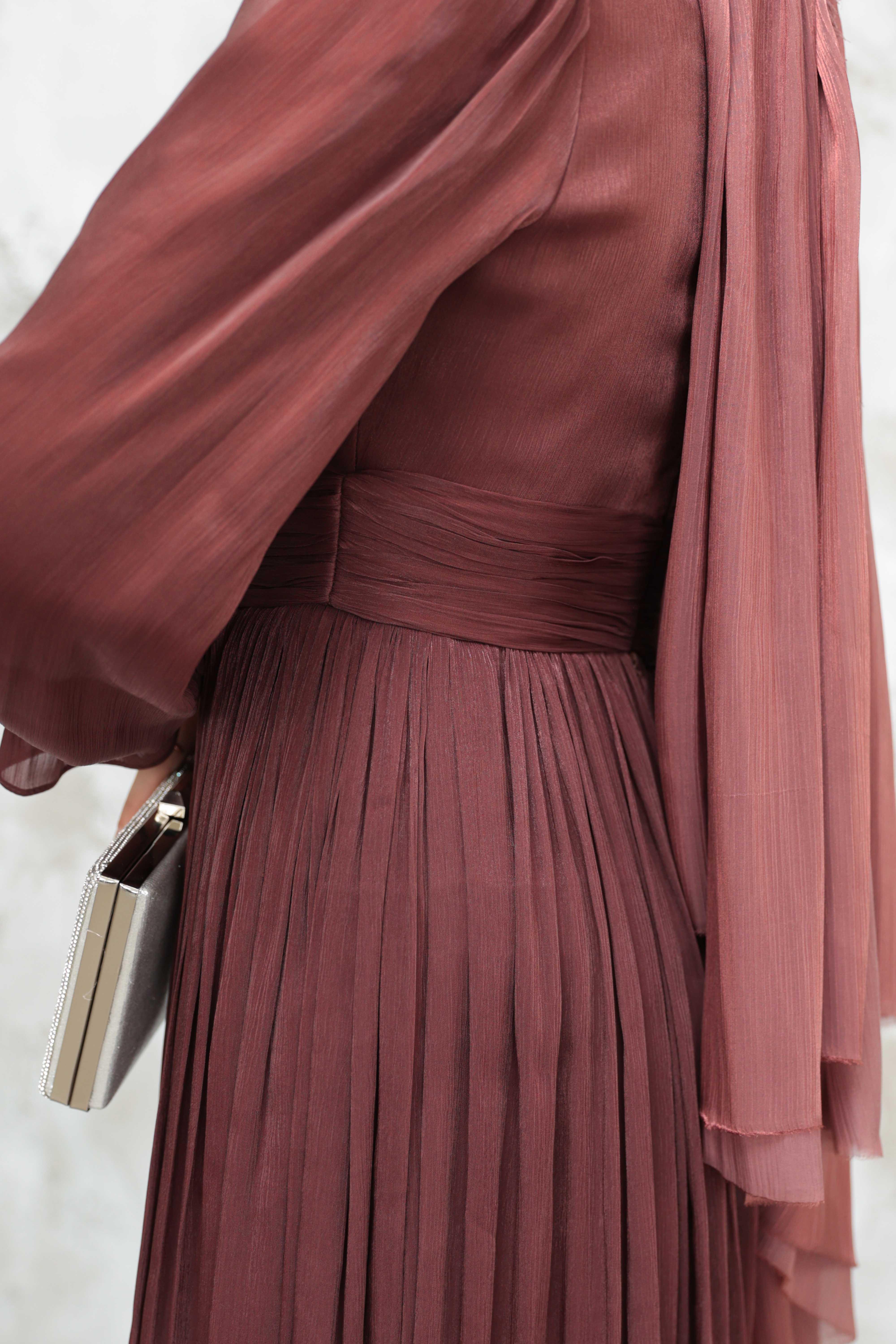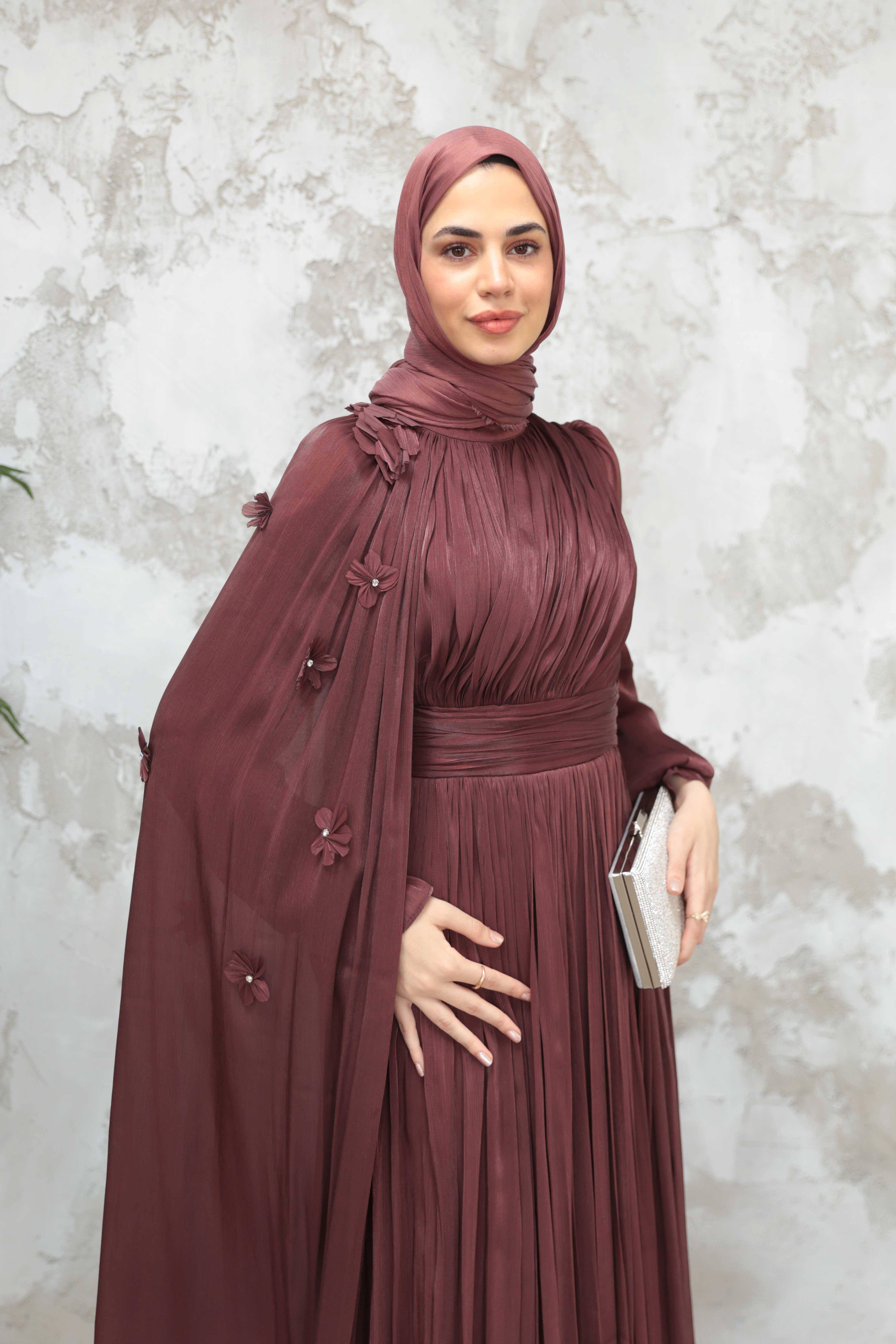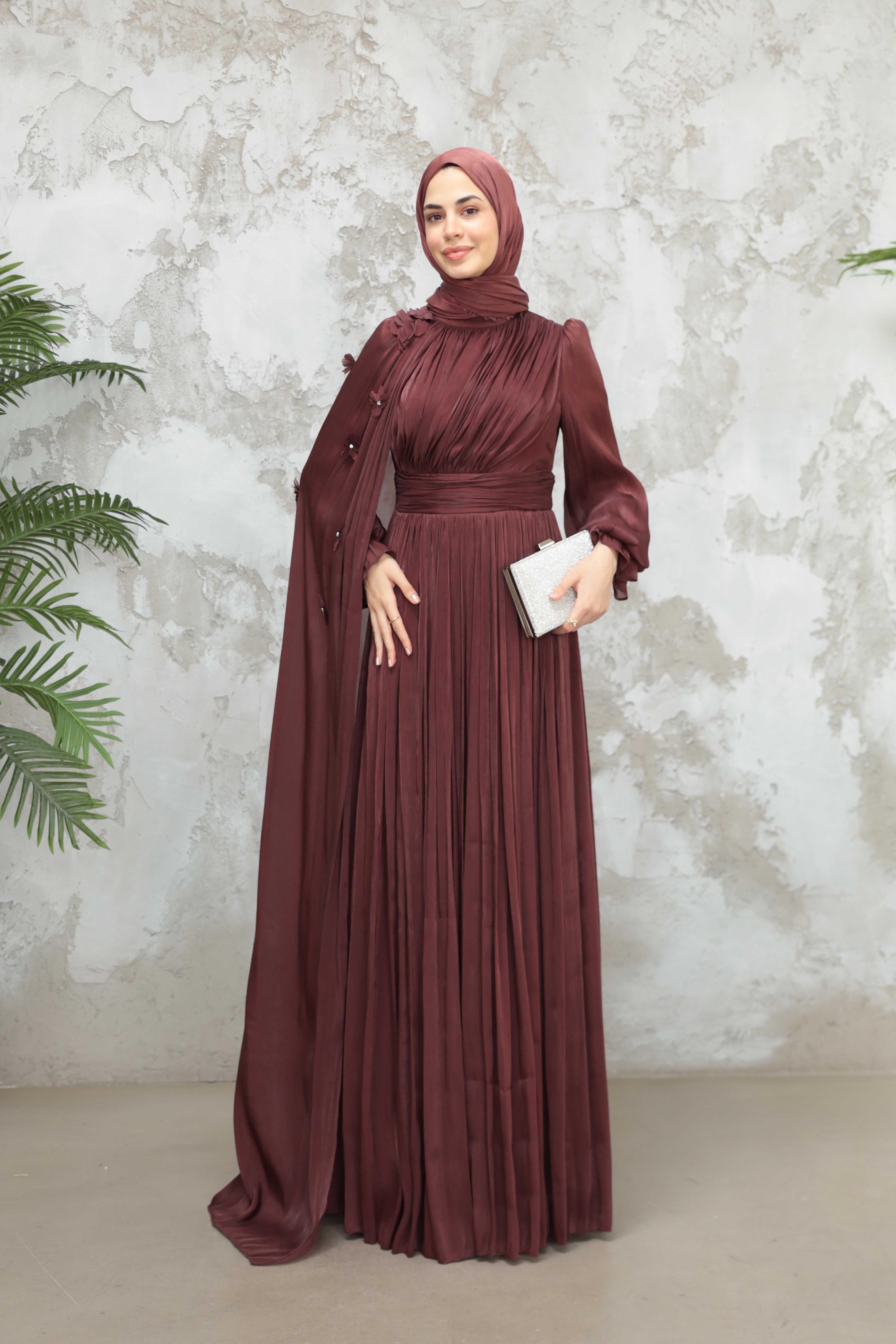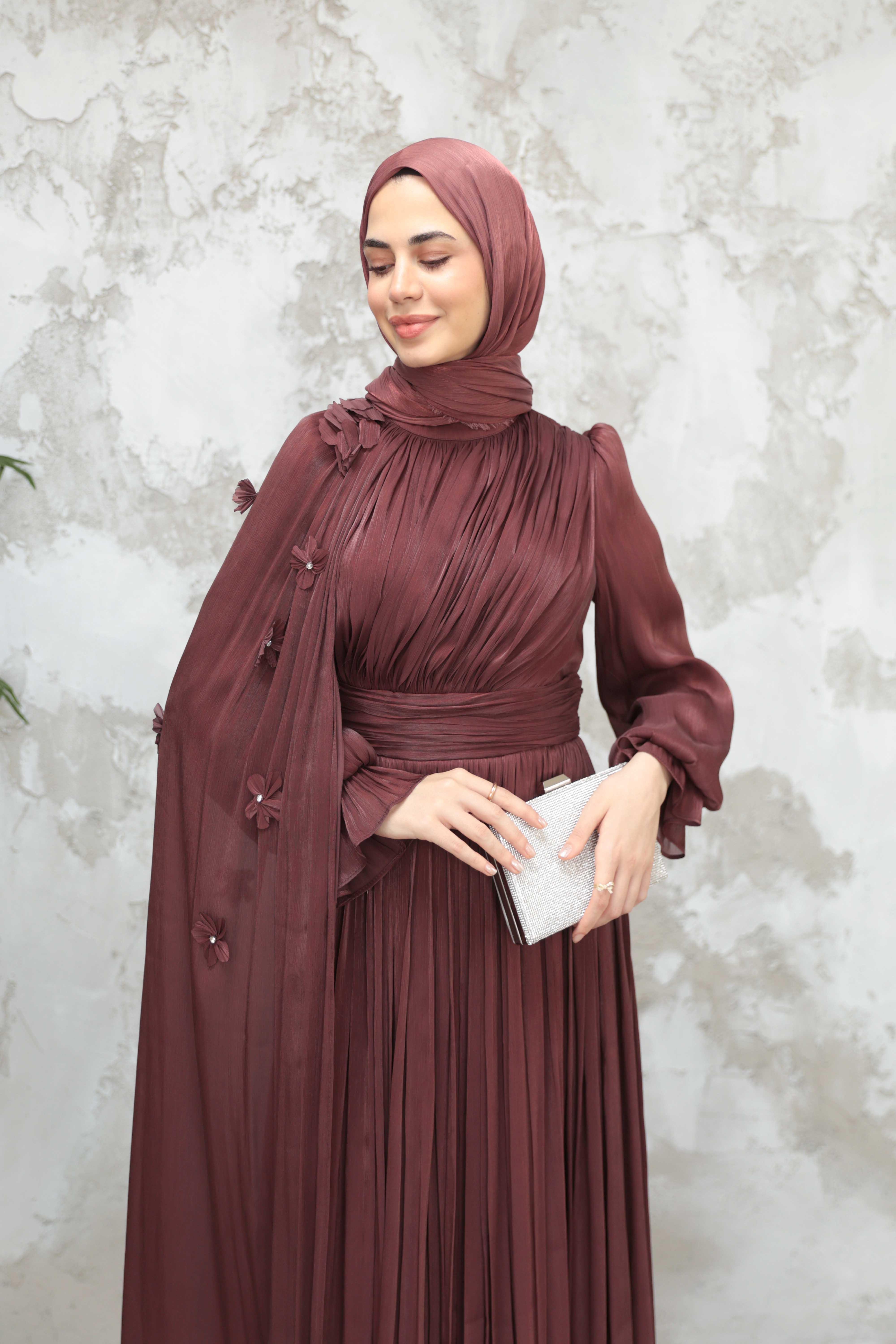 Göksel Çiçek Detay Işıltı Abiye - Kahverengi (ABY000567)