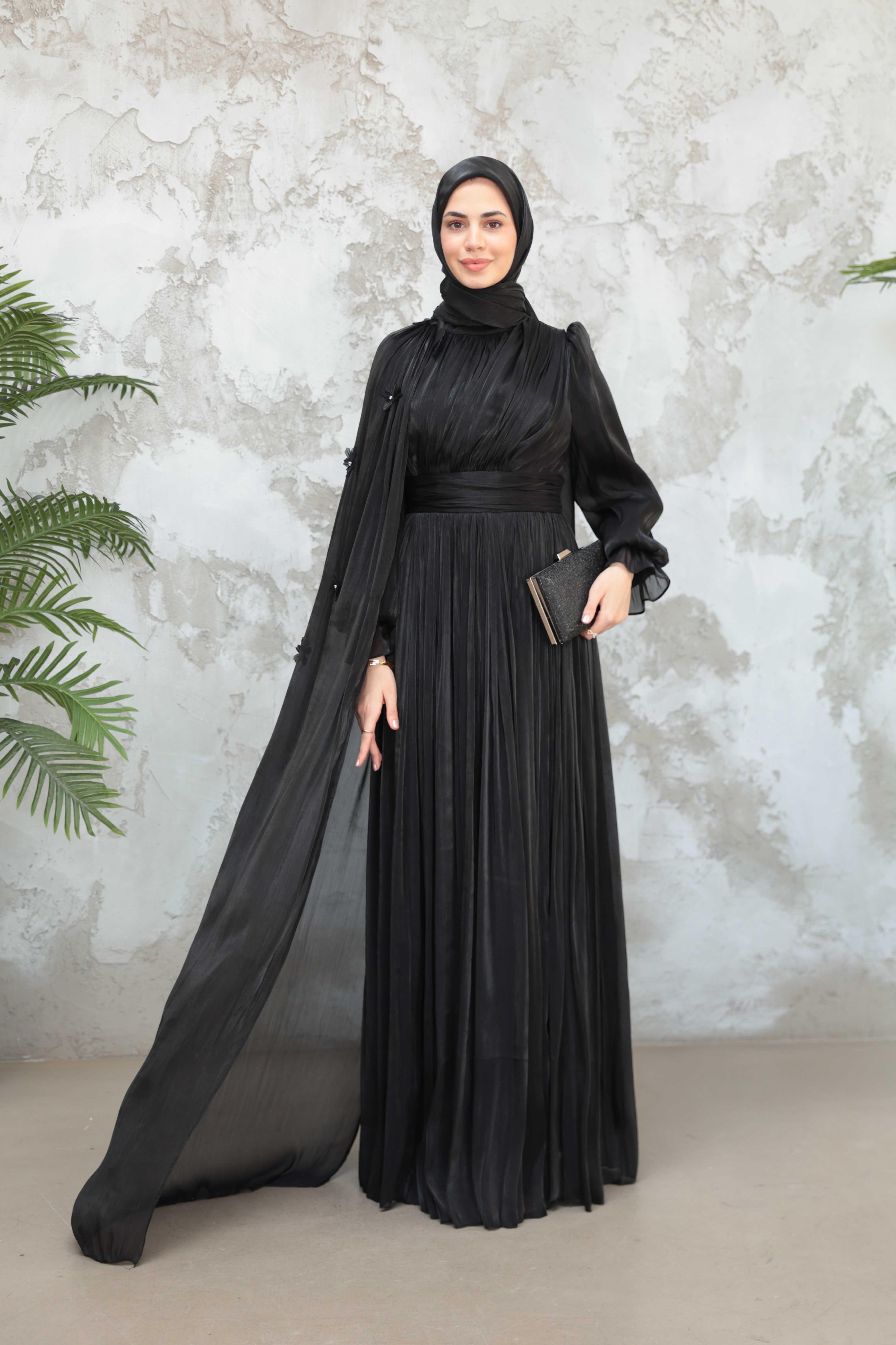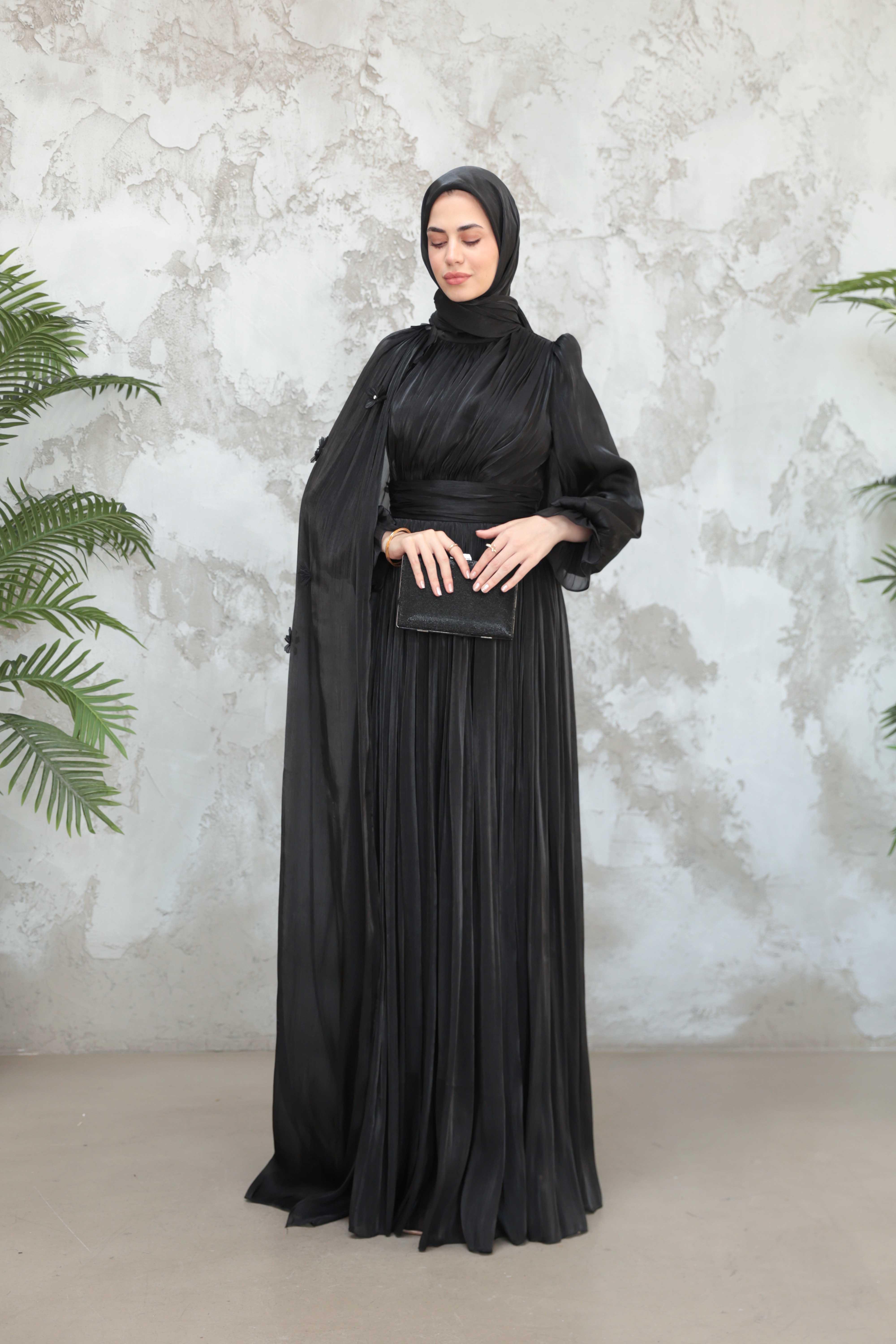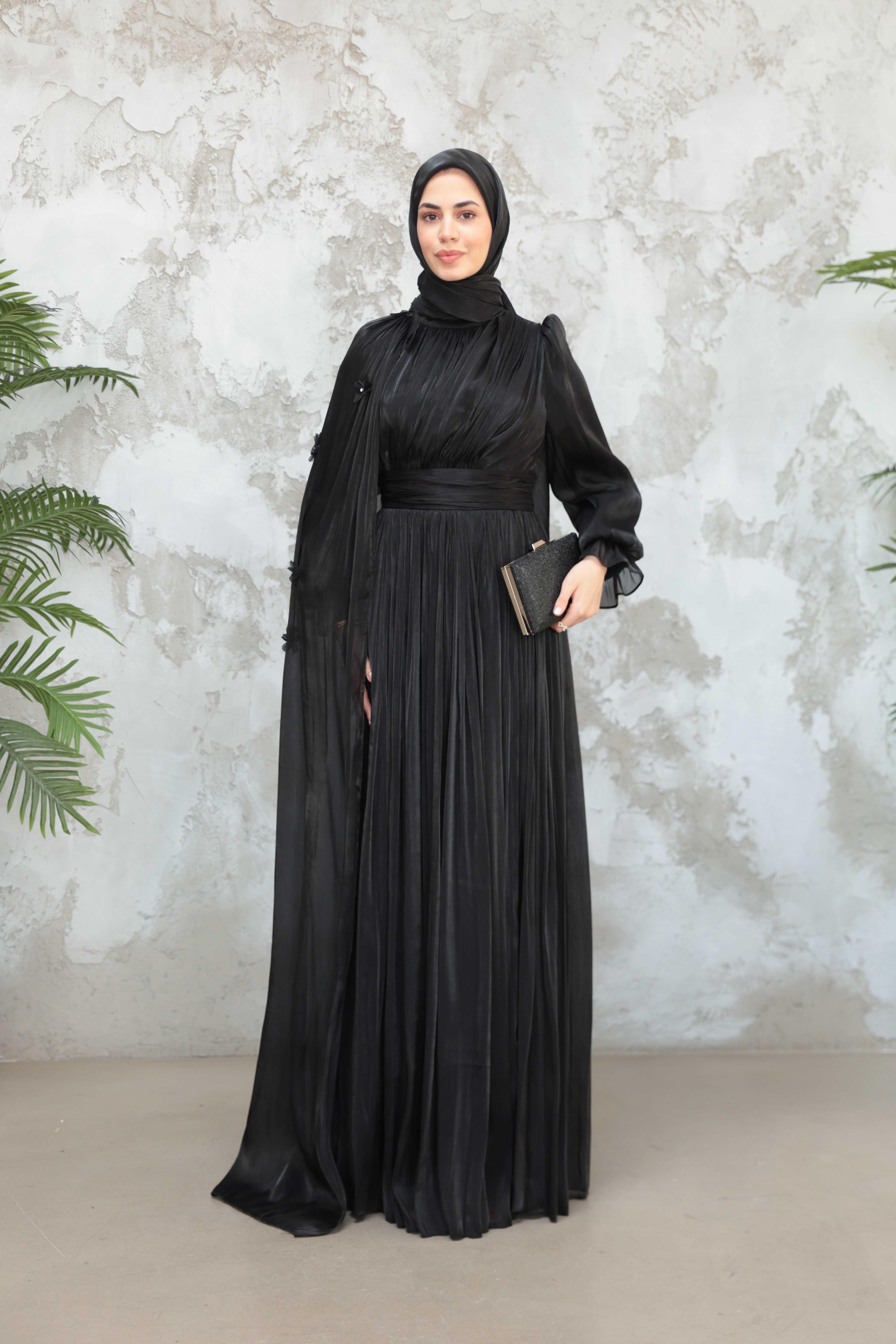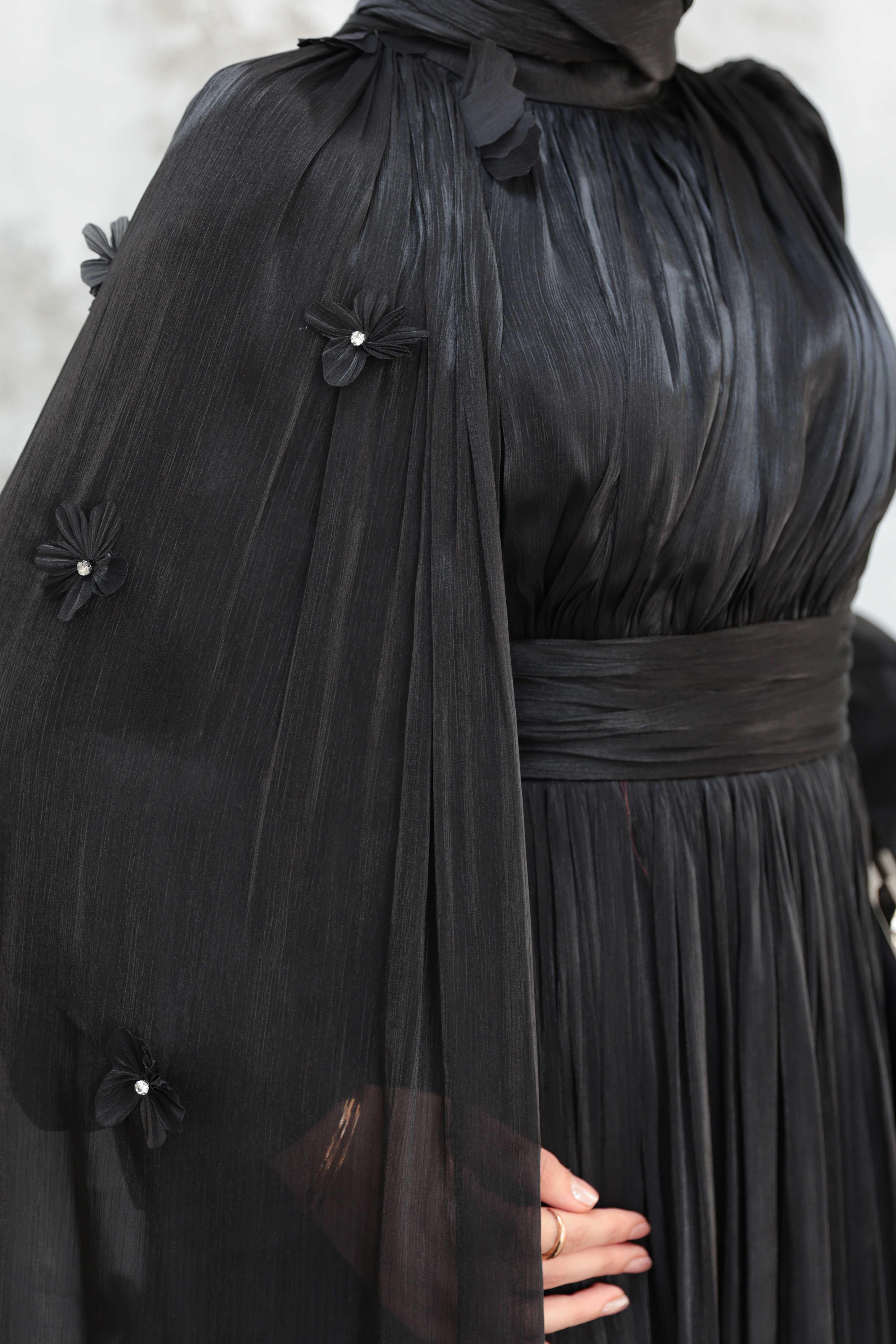 Göksel Çiçek Detay Işıltı Abiye - Siyah (ABY000567)