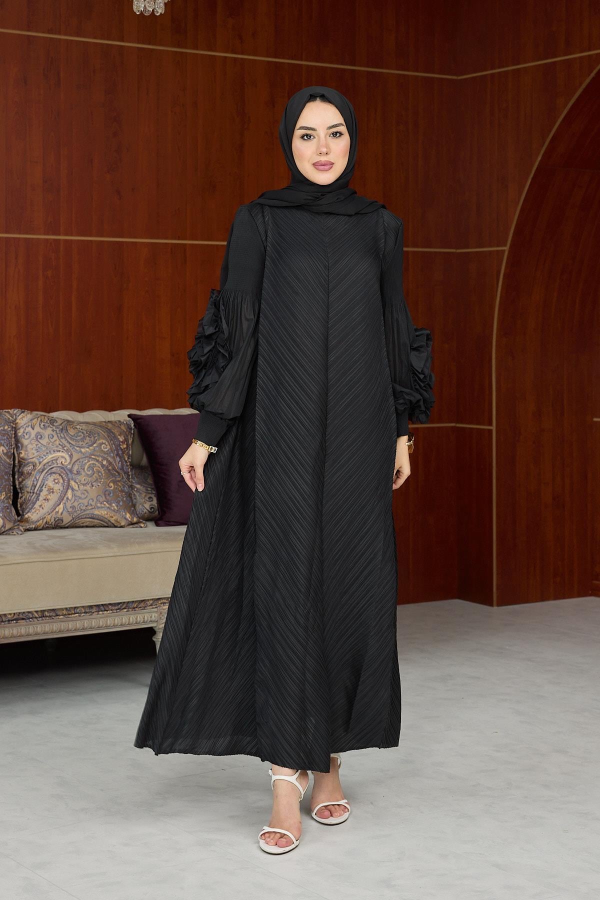 Kol Detay İthal Elbise - Siyah (ELB000272)